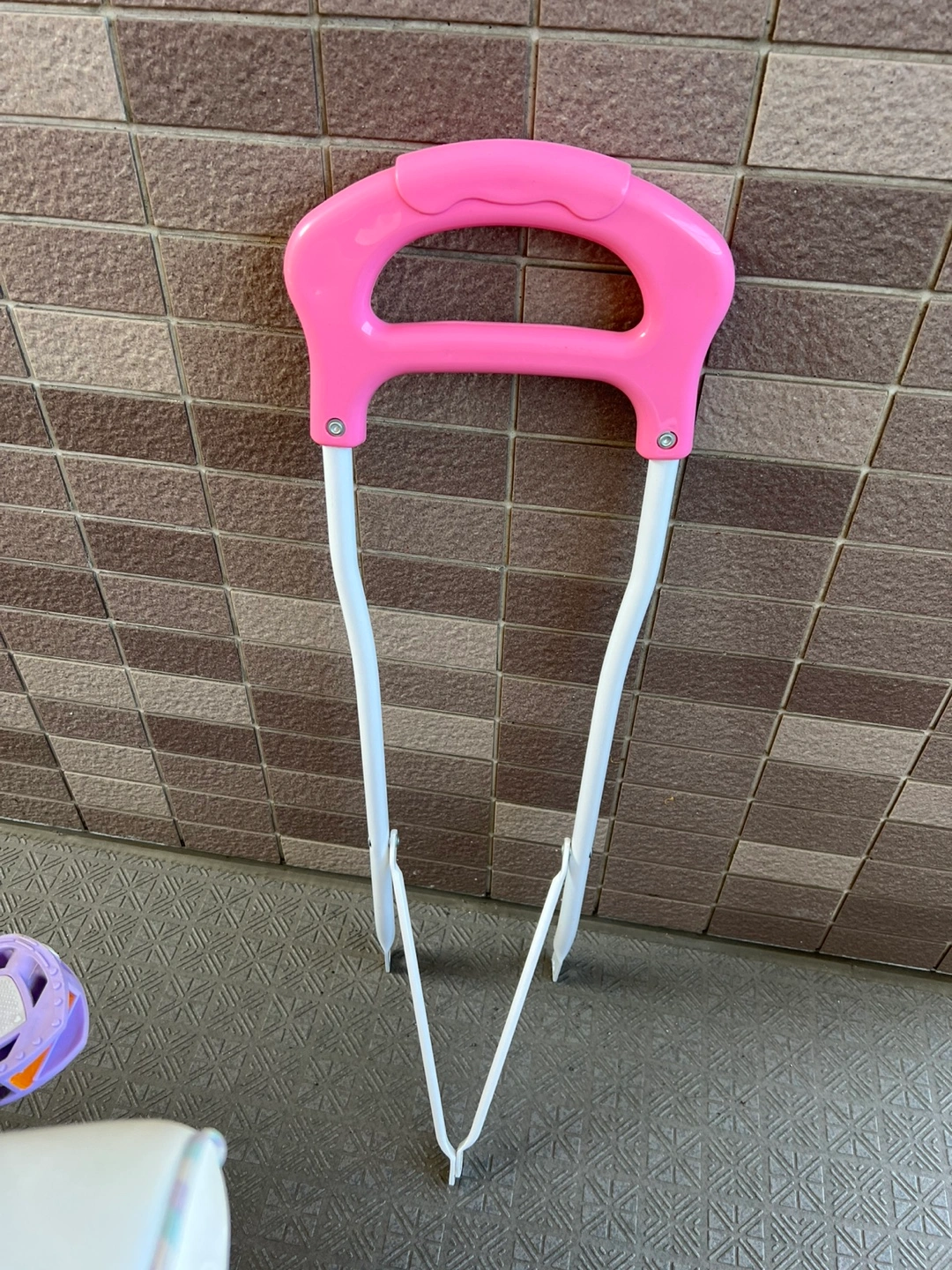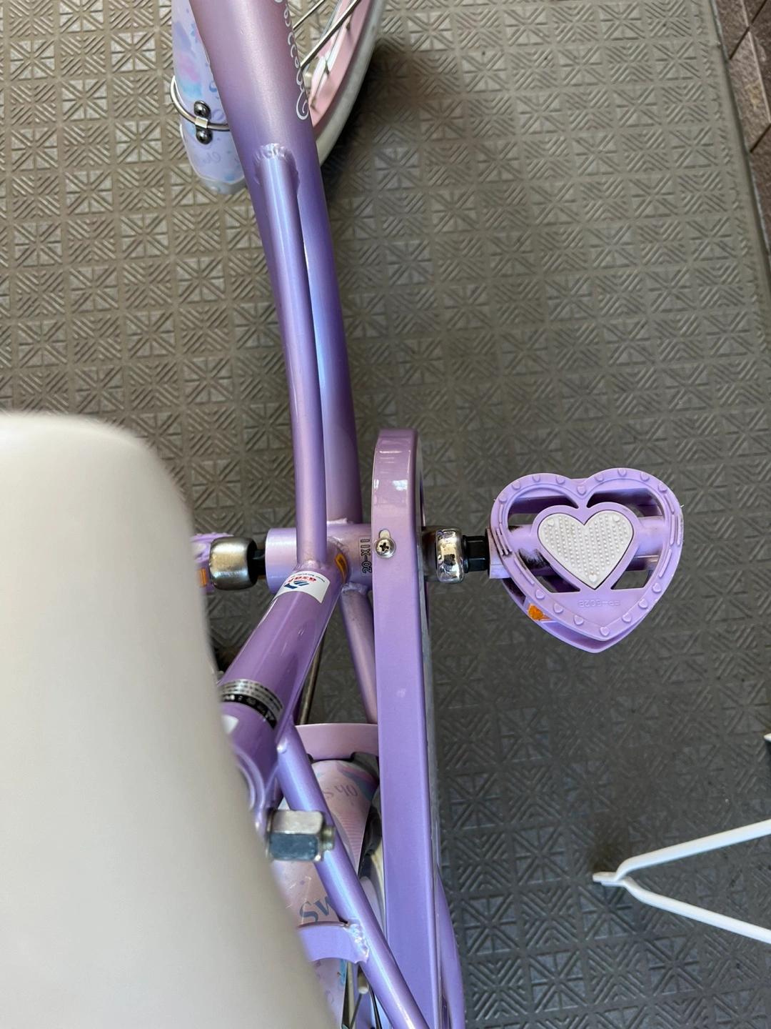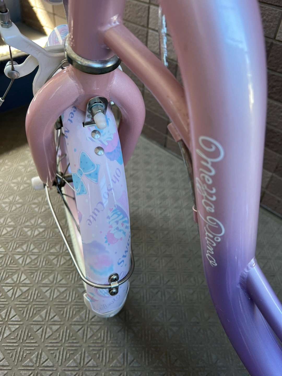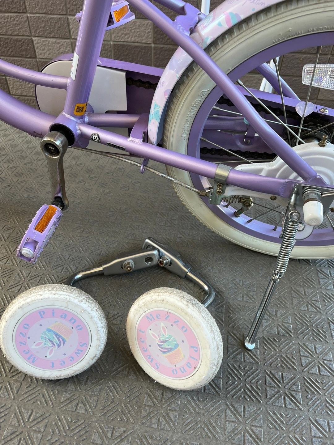 こちらは近隣お住まいの方の引き取り希望です。東京23区内住在。 2021年2月購入。 大切に屋根のある場所で使用しない際にはカバーをかけて保管して、週末など乗っていました。 補助輪とアサヒオリジナルの、後ろから保護者がコントロール出来るようにするピンクの別売りのバーもお付けします。 サビもサビとりで磨けばとれくらいのものでほとんどついておらず、柄も綺麗で状態は良い方かと思います。 ダメージとしては、一つ後ろの車輪横?くらいの白いボルトカバーのプラスチックが劣化で割れているのでテープで補強しあります。ボルトのサビ防止カバーのようです。前車輪の片方もよく見たら紛失しています。アサヒに電話したら一つ55円でサイズ合うのがあれば購入出来るようです。なくても走行には支障はないようです。 ベルにミラーが内蔵されていたり女の子らしくとてもかわいいです♪。 これから春になり行楽日和になりますのでサイズ合う方ぜひお得にご購入下さい。(現行品で定価28000円です) 補助輪はわりと使いましたが、補助輪だけ出品されている方も某フリマサイトでいますので気になる方はそちらを合わせて購入するのもありかと思います(^O^)。 受け渡し場所等はコメントからご相談下さい。 女の子自転車 キッズ自転車16インチ