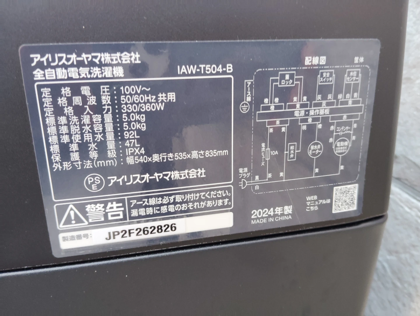 【美品・お届けも可能です】2024年製 アイリスオーヤマ 洗濯機 5.0kg ブラック IAW-T504-B