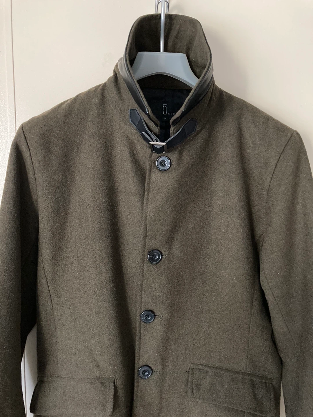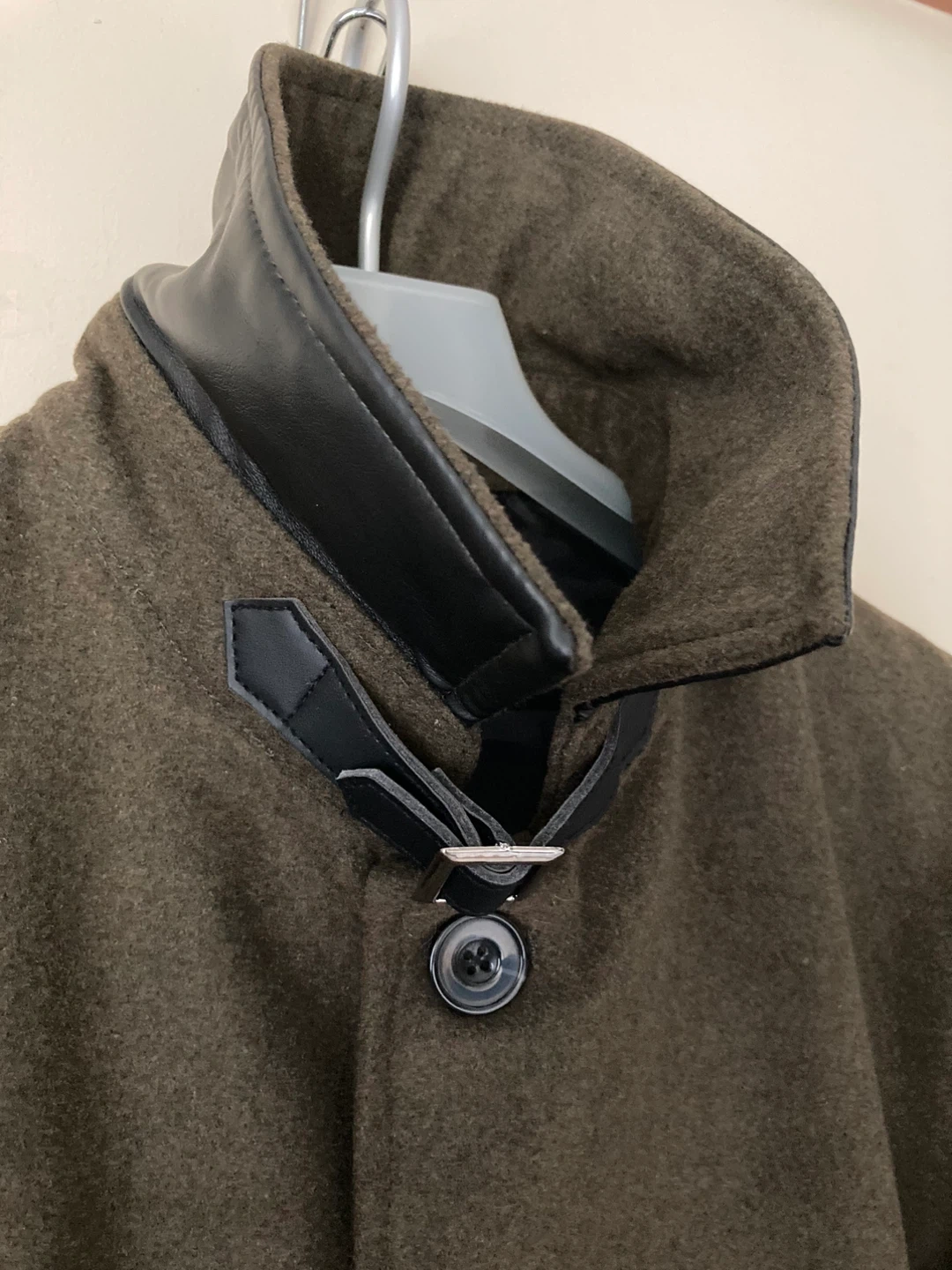 数回の着用ですので、全然的に綺麗な方です。 画像にてご確認下さい。 襟を立てるとレザー調が見えカッコよくなり、2wayのスタイルで着用頂けます。 ジャケット感覚でも着用頂けると思います。 シッカリした生地です。 オシャレにこれからの季節にいかがですか?! 自宅付近まで取りに来て頂ける方のみお願い致します。