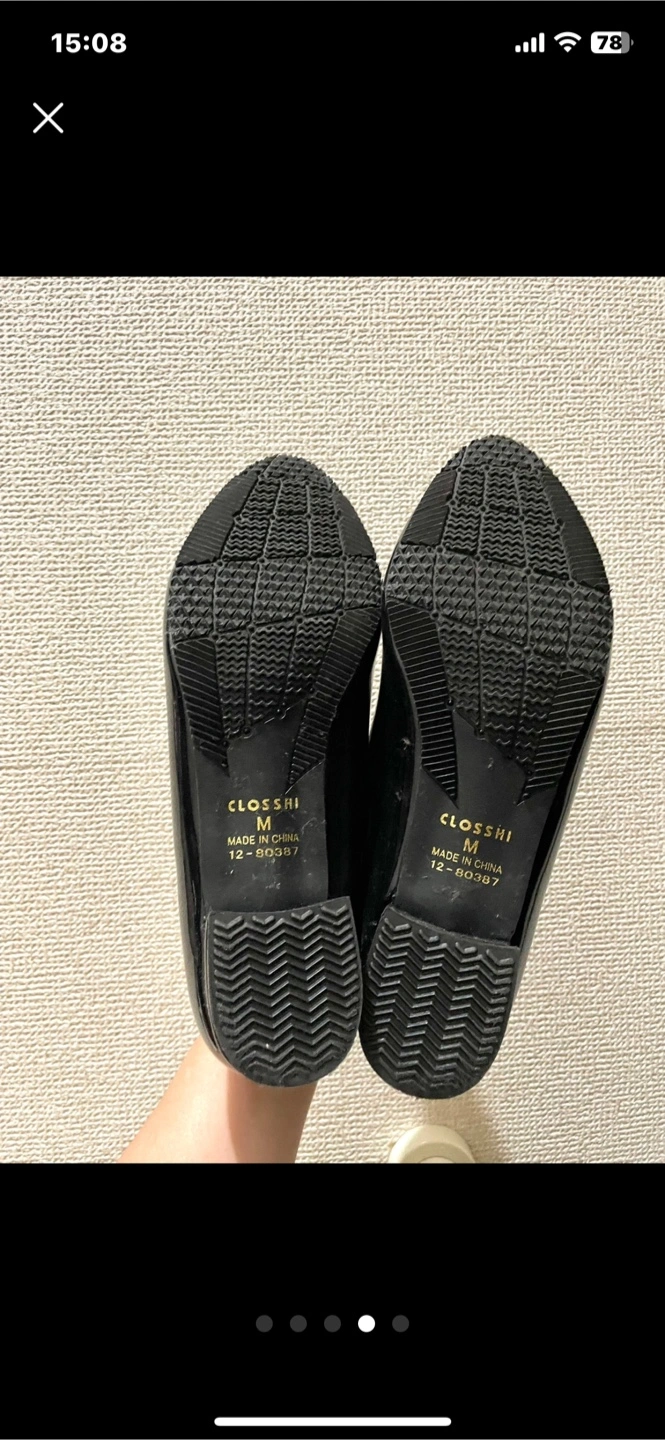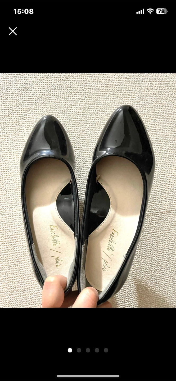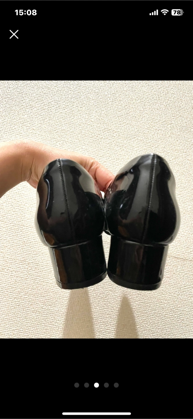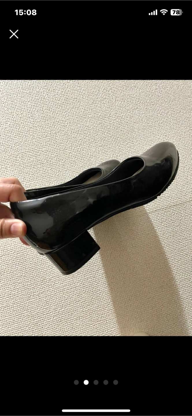 雨天用の黒パンプスです ・カラー:ブラック ・サイズ:M 黒皮の部分が、雨天用の素材です ただパッと見は普通のパンプスと 変わらないので 雨天時に、これを履いていても "雨靴感"がないのがいいです 履いて下されば分かりますが 靴の中の足裏の部分が かなりクッションが効いており フワッとしていて 素足で履いて 長時間歩いても、他の靴より 疲れにくいと思います 柔らかい素材で出来ているので 痛く感じません またマメが出来にくいように かかとの部分にガードのようなものが ついています (写真5枚め) Mサイズと表記してあります 24センチで私はピッタリです 雨天時のお出かけ用で、 念の為購入して 保管しておりましたが 最近はヒールのない靴しか 履かなくなりましたので もう履かないかな?と出品しました スレもなく全体的にも、靴の裏も綺麗です すごく履きやすいのでオススメです 会社員の方など 雨天時の出勤の際 大活躍してくれると思います お渡しの際は再度アルコールで 拭いてからお渡ししたいと思います 他にもたくさん出品しております 合わせてご検討ください 受け渡し場所については 柔軟に対応したいと思いますので プロフィールをご一読ください 自宅保管品であるということをご了承の上、ご購入ください ご不明点等ございましたら ご連絡ください