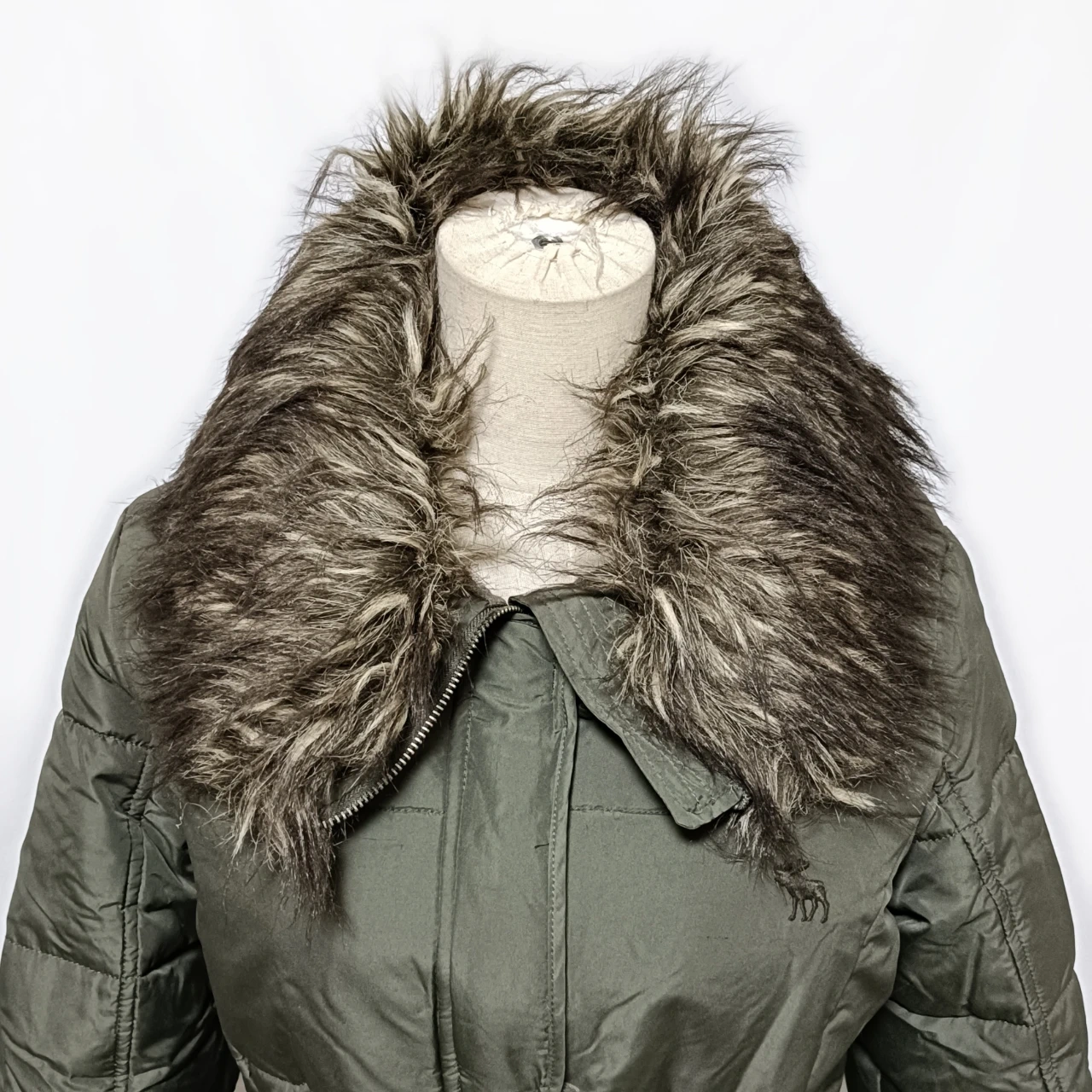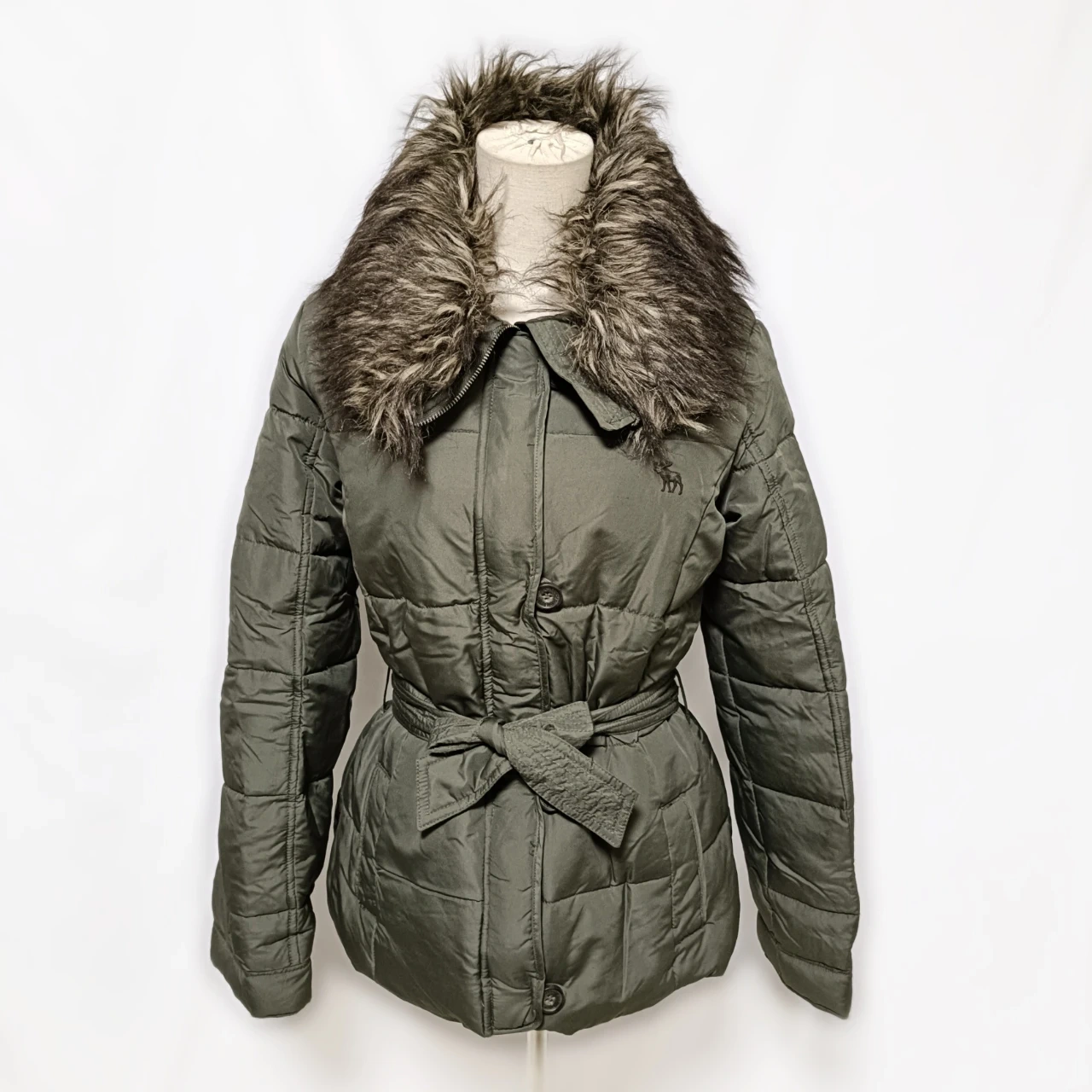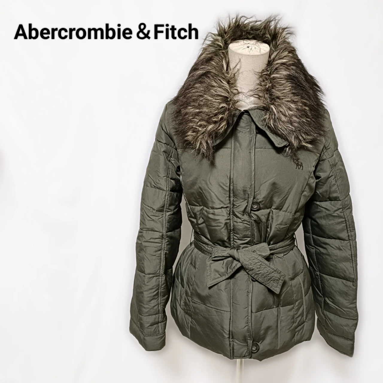 【美品】アバクロ ファー付 ダウンジャケット S カーキ ベルト付