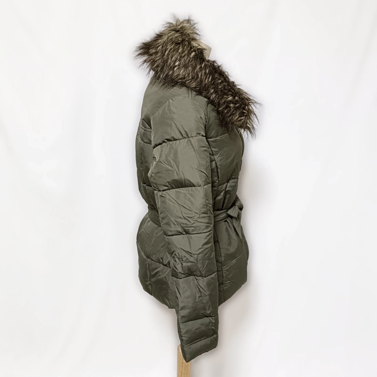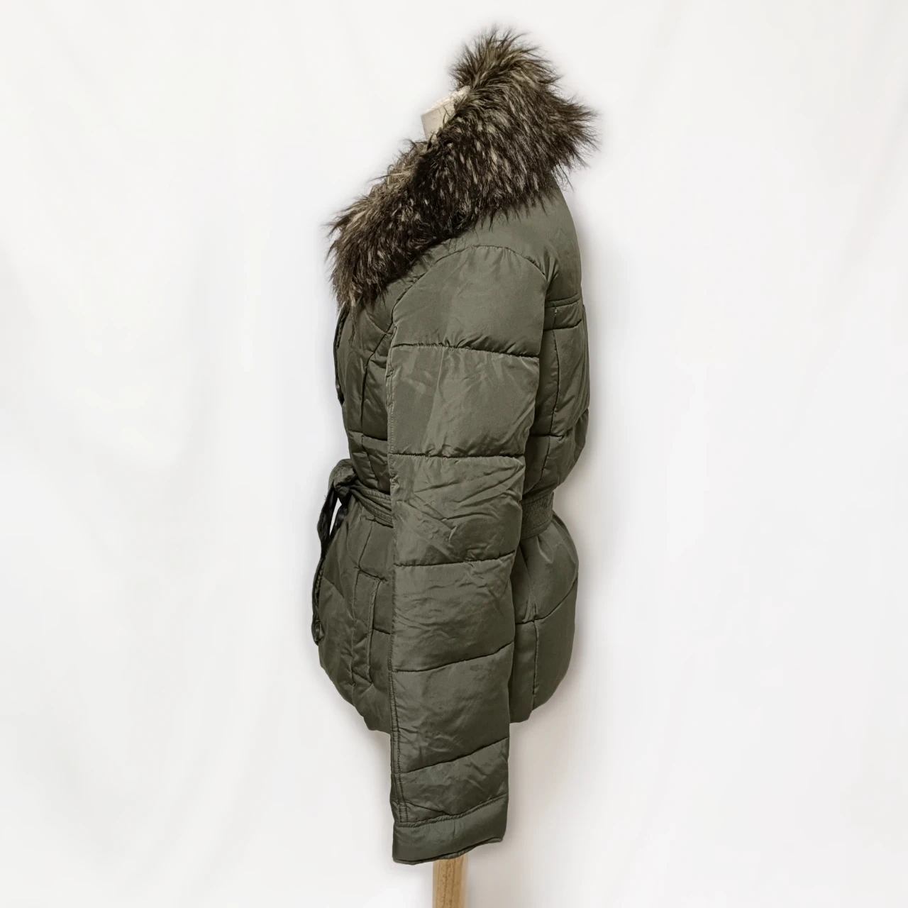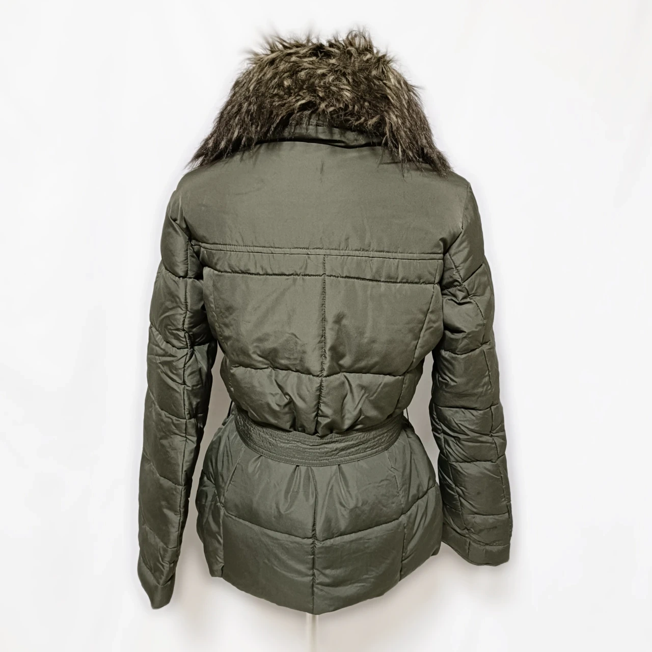 【美品】アバクロ ファー付 ダウンジャケット S カーキ ベルト付