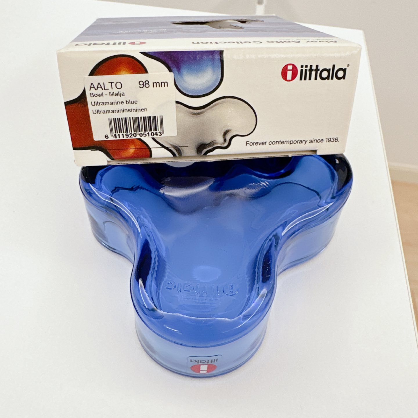 iittala イッタラ Alvar Aalto アルヴァ・アアルト アアルトのボウルです。 飾っていたのみで美品です。 お色はウルトラマリンブルーです。 サイズ    98(mm) デザイナー  Alvar Aalto        アルヴァ・アアルト お写真ご確認の上ご購入お願いします。 #イッタラ #iittala #アルヴァアアルト #記念 #ボウル #小物入れ #キャンドルホルダー #フラワーベース #花瓶