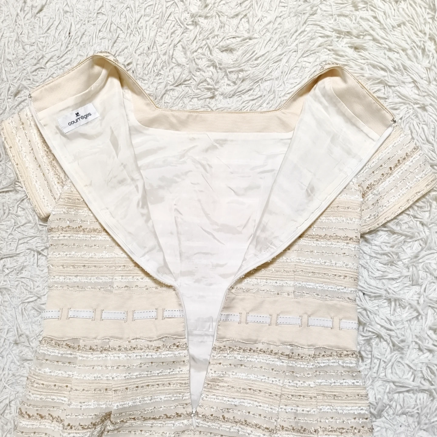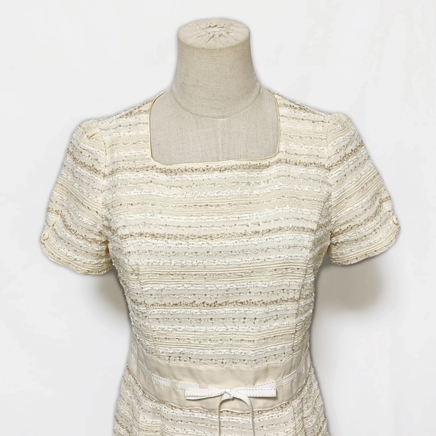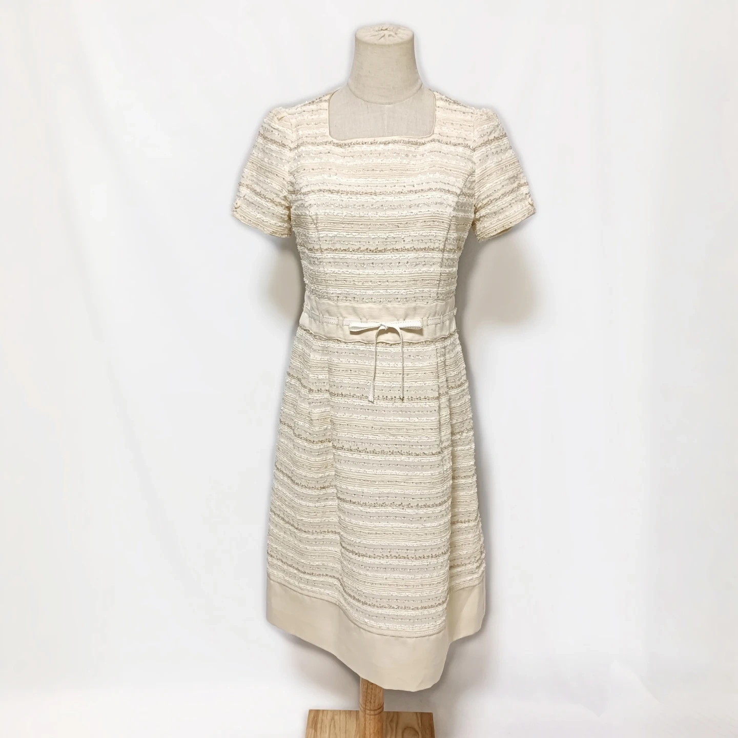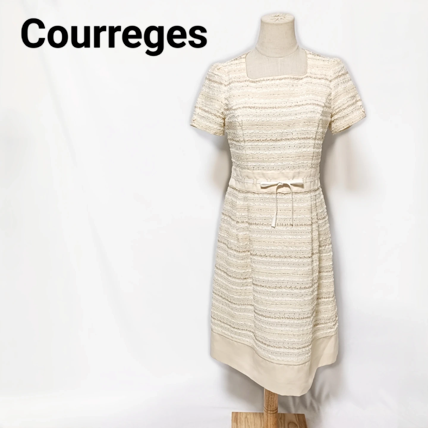 ご覧いただきありがとうございます! クレージュの上品でエレガントなツイード風ワンピースです。 ウエストの切り替え部分には、グログラン素材のリボンベルトが付いており、スタイルアップ効果があります。 入学式、卒業式、七五三、結婚式、二次会、お食事会など、ハレの日やフォーマルなシーンに最適です。 □商品名□ 美品 クレージュ ツイ ード 半袖ワンピース 38 M スクエアネック 上品 □ブランド□ Courreges クレージュ □表記サイズ□ 38 (Mサイズ相当) □実寸サイズ(cm) □ 着丈:97 肩幅:38 身幅:40 袖丈:20 ※実寸につきまして多少の誤差はご了承ください。 ※表記サイズだけではなく実寸のサイズをご確認ください。 □カラー□ アイボリー、ベージュ系 □素材□ 表地(本体部分): ナイロン 49% ポリエステル 27% コットン 24% 裏地: キュプラ □コンディション□ 目立った汚れやダメージなど特にございません。 ※汚れはできる限り写真にて掲載しております。まずは画像をご確認ください。 どうぞよろしくお願い致します。 □商品管理番号□ FF2-W-5630