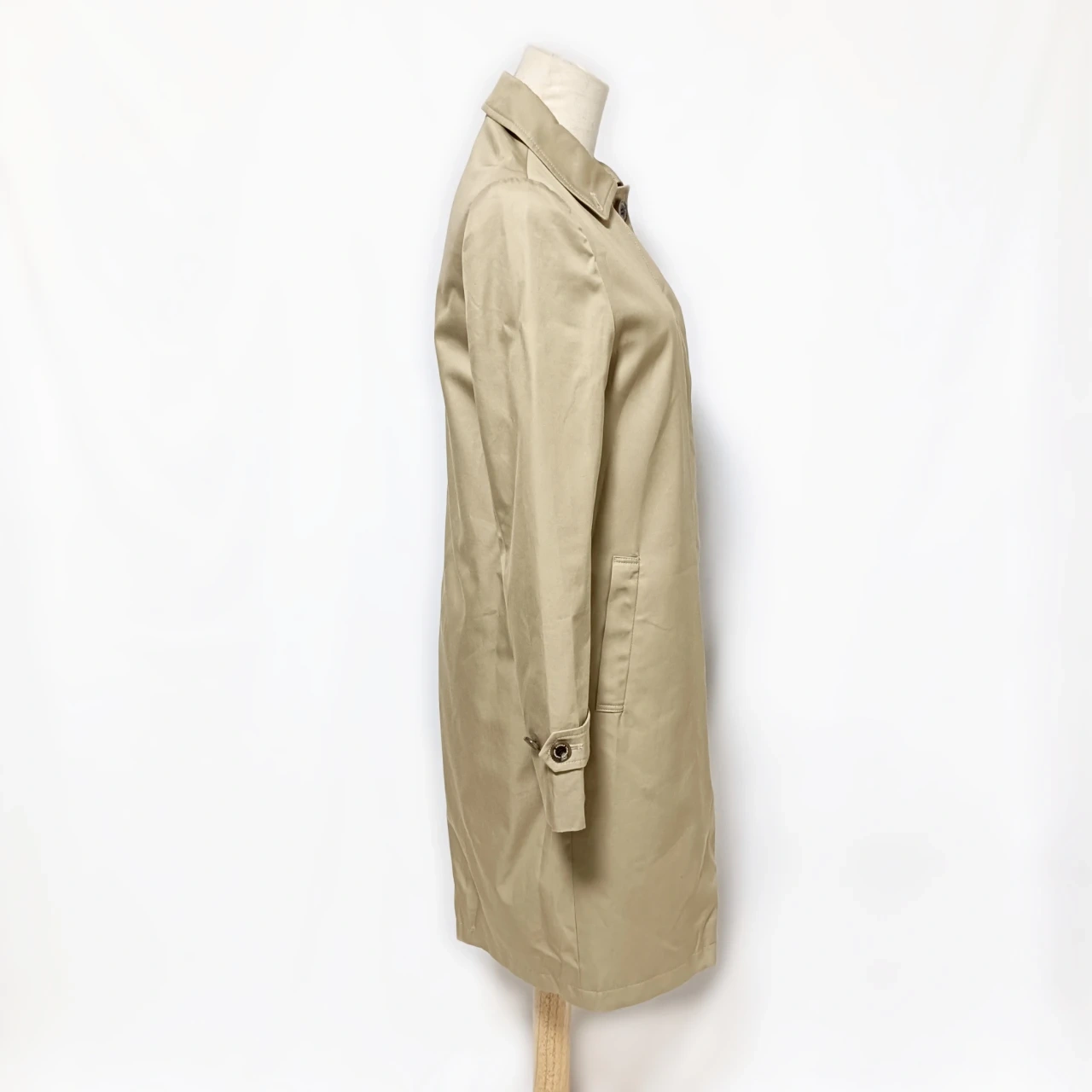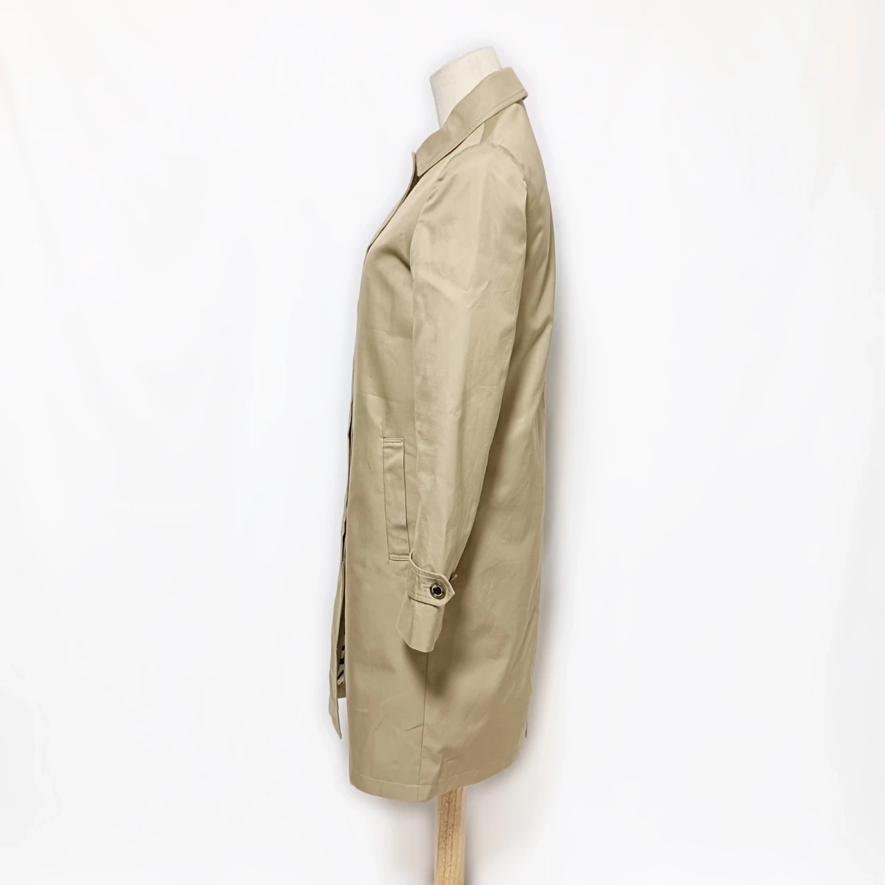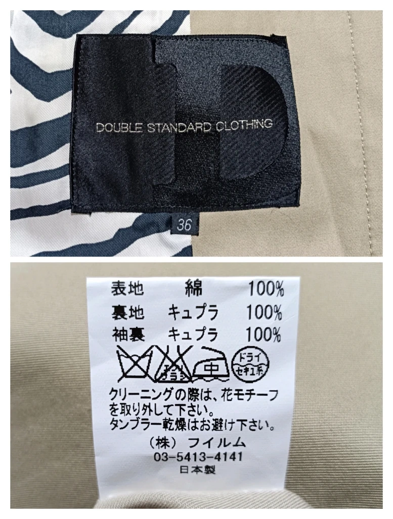 ご覧いただきありがとうございます! DOUBLE STANDARD CLOTHING(ダブルスタンダードクロージング)の、春・秋にぴったりのステンカラーコートです。 表地は上質な綿100%、**裏地と袖裏はキュプラ100%**を使用しており、袖通しが良く着心地抜群です。 ベーシックな比翼仕立てのシンプルなデザインで、オンオフ問わず着回しがききます。 □商品名□ 【美品】ダブスタ 比翼 ステンカラーコート 36 ゼブラ柄裏地 綿100% ベージュ □ブランド□ DOUBLE STANDARD CLOTHING ダブルスタンダードクロージング □表記サイズ□ 36(S~Mサイズ相当) □実寸サイズ(cm) □ 着丈:95 肩幅:36 身幅:46 袖丈:62 ※実寸につきまして多少の誤差はご了承ください。 ※表記サイズだけではなく実寸のサイズをご確認ください。 □カラー□ ベージュ □素材□ 表地:綿 100% 裏地:キュプラ 100% 袖裏:キュプラ 100% □コンディション□ 目立った汚れやダメージなど特にございません。 ※汚れはできる限り写真にて掲載しております。まずは画像をご確認ください。 どうぞよろしくお願い致します。 □商品管理番号□ T9-S-5593