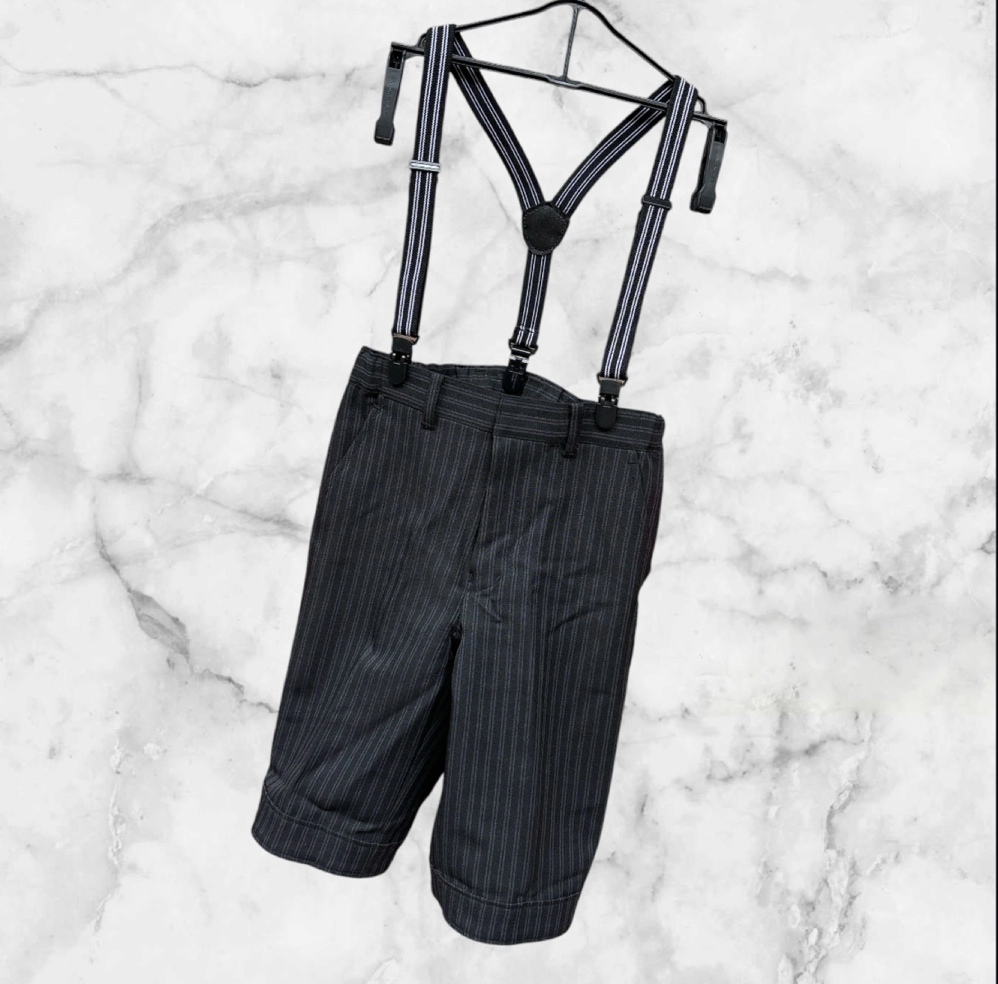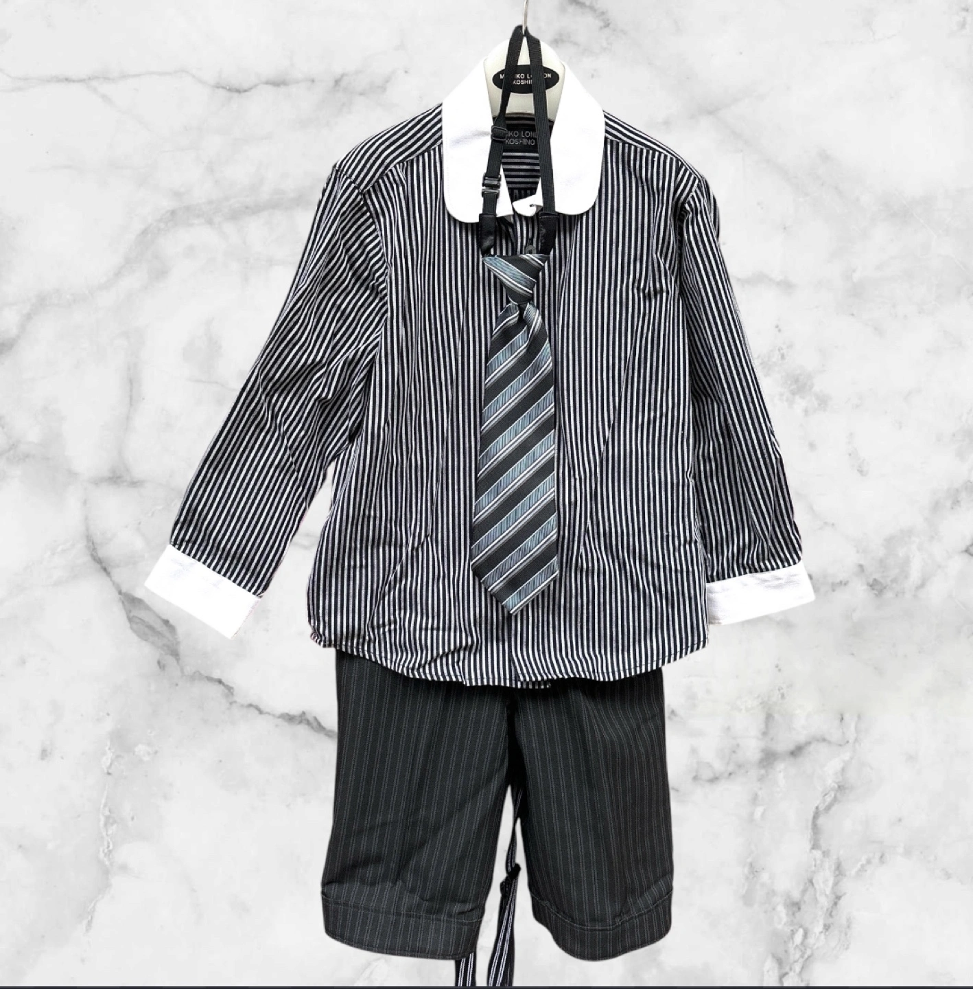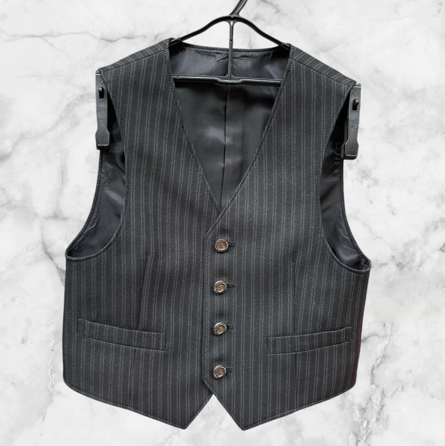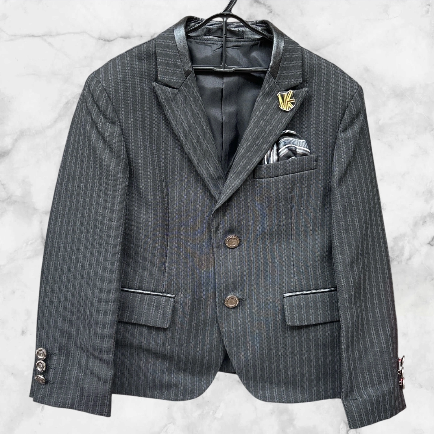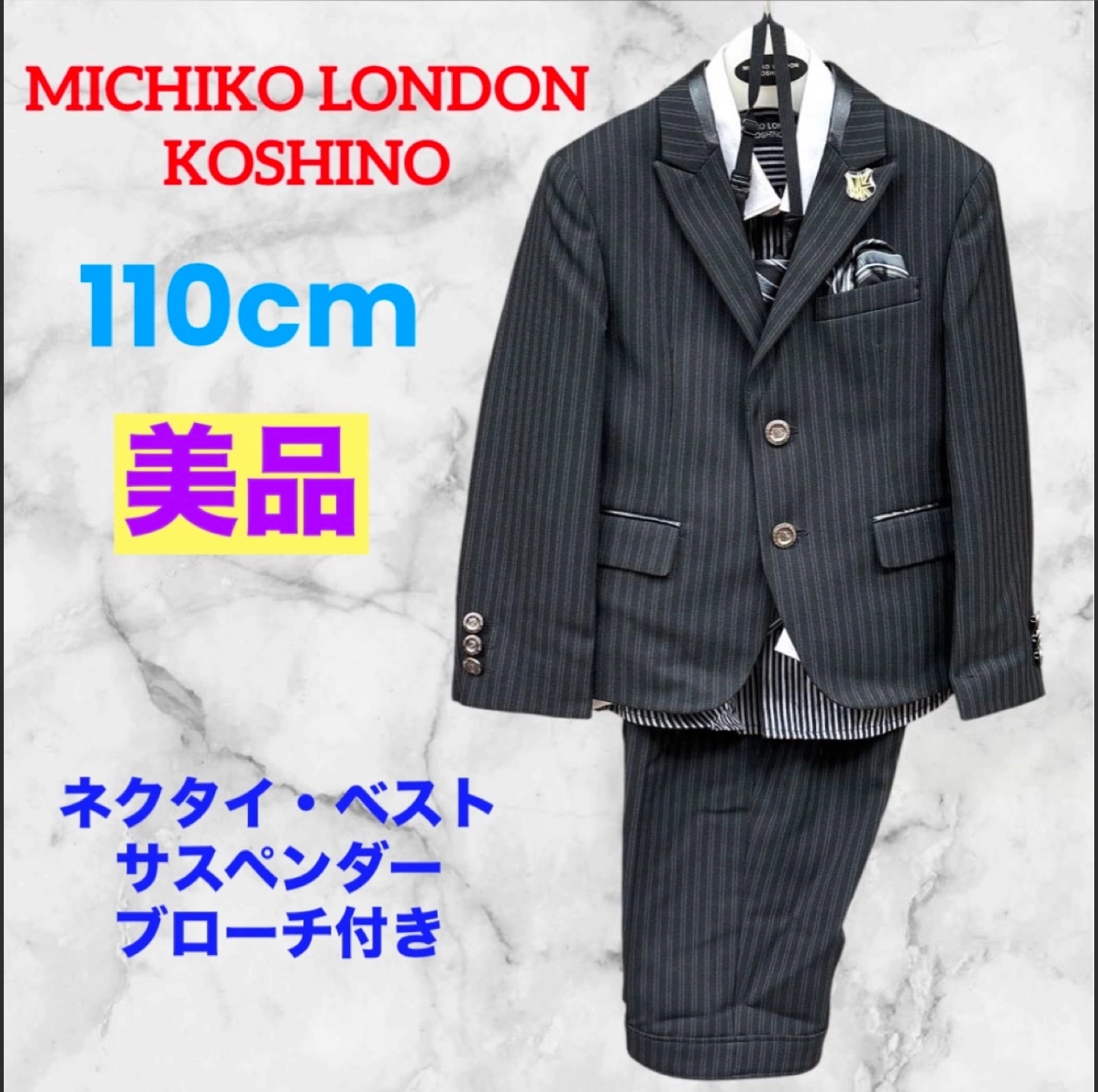 MICHIKO LONDON KOSHINO 子供用 フォーマルスーツ セットアップ ☆美品 ☆サイズ…110cm ☆カラー…ダークグレー ☆ネクタイ、ベスト、サスペンダー、ブローチ付き ☆専用ハンガーあり ☆ストライプ…ピンストライプ ☆ジャケット…ボタン付き ☆パンツ…ストレートカット ☆ポケット…フロントポケット付き ☆ライニング…ストライプのライニング 【デザイン】 ダークグレーのピンストライプが特徴的なフォーマルスーツです。シンプルながらも洗練された印象を与えます。 【機能性】 フロントポケットやボタン付きのジャケット、ストレートカットのパンツがあり、実用性も兼ね備えています。 【スタイル】 ブローチ付きで、特別な場面にも対応可能。ストライプのライニングが内側に施されており、細部までこだわりが感じられます。 1度着用のみ 目立った汚れや破れ等もなく美品です 他サイトでも出品中です。 他で売れた場合、急に削除しますので、ご了承ください