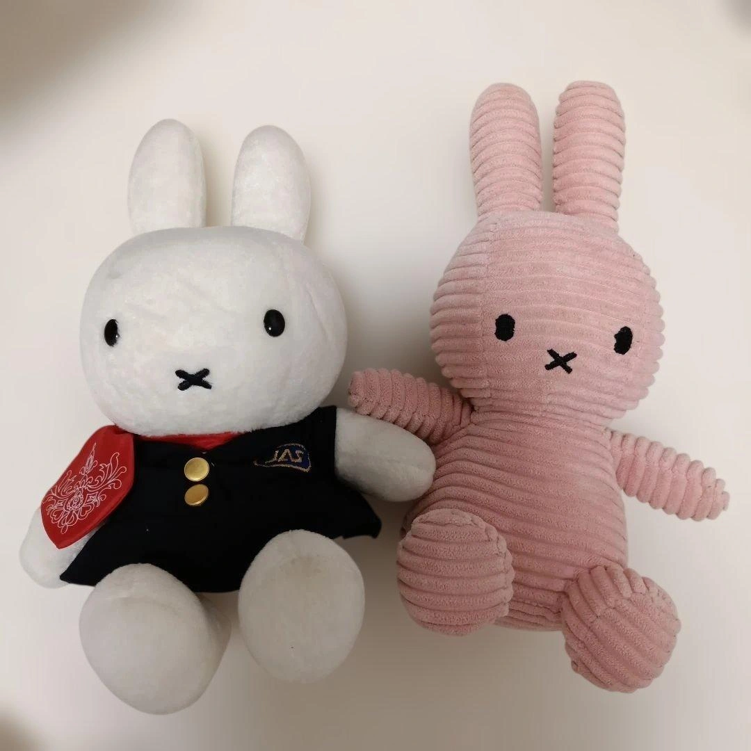 あたたかさミッフィーのピンク色のコーデュロイぬいぐるみとjasの機内コスチュームのぬいぐるみセットです。 jasは25年近くらい前のものです。 ミッフィーが大好きで暗所に保管していたのでかなりきれいなまま残っています。 どちらも23センチ程度です。 ピンクの方は数年前に購入しました。 よーーく見ると少し染みがありました。 一度お洗濯してもよさそうです。 jasの方は汚れは見えませんが、顔に少し筋があります。 どちらも写 真ご確認お願いいたします。(^^) ※素人による自宅保管です