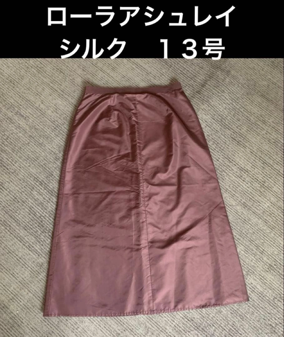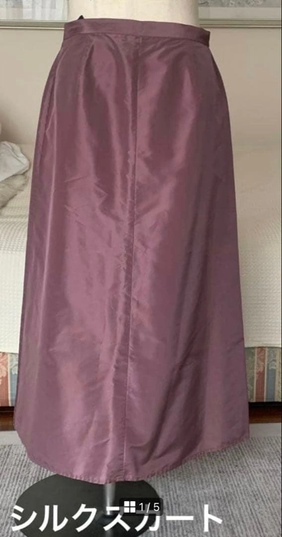 大変美しいモーヴピンクのシルクのスカートです。使用僅かでコンディション良好です。 後にスリットはありません。 同色の裏地が付いています。 平に置いた状態で、 ウェスト36 丈89 ヒップ50 他にもローラアシュレイのものを出品しましたので、よろしければご覧ください