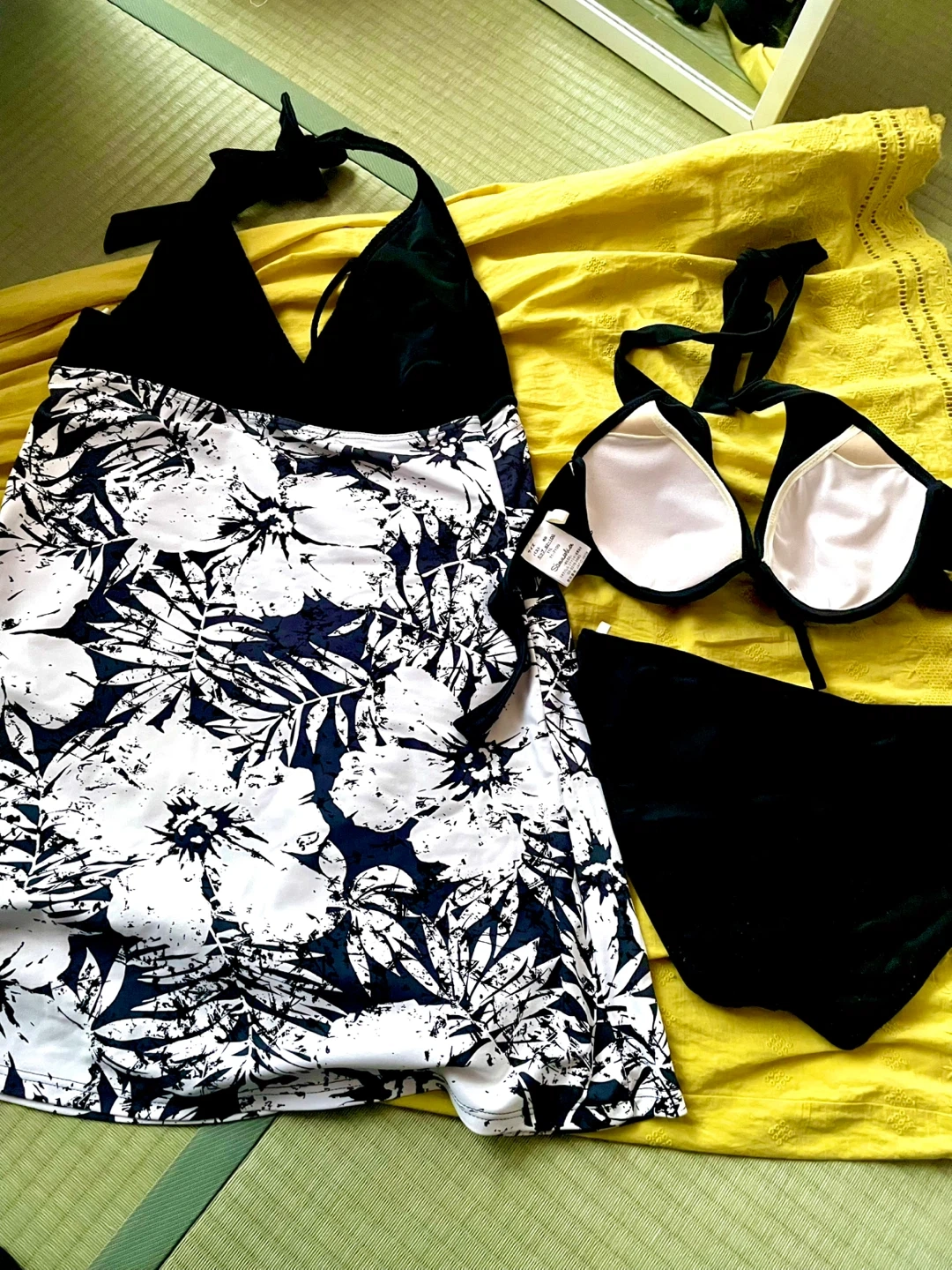 ・サイズ:11L ・バスト:86cm ・ヒップ:92〜100cm ・色:黒、白、花柄 ・状態:使用1度のみ レディースの水着 3点セットです ビキニの上から ワンピース型の水着を着るので 気になるお腹を隠してくれます ホルターネックです 中がセパレートですので トイレや着脱も簡単です きれいめエレガントなデザインです 11号ですので 標準〜ちょいぽちゃの方向けかなと 思います お手持ちのビキニの上から このワンピース型水着を着ることも おそらく可能だと思います お腹を隠したい方に オススメです 以前、沖縄旅行の為に購入し 1度着たのみです 実際は水着の上から 日焼け止め用のパーカーを 着ておりましたので 中のビキニ上は未使用 ワンピース自体は日焼けもなく 写真の通りきれいです カナヅチですし 今後泳ぎに行くことは なさそうなので出品します 他にもたくさん出品していますので 合わせてご検討ください 取引場所は、 柔軟に対応しており ますので プロフィールを ご一読ください