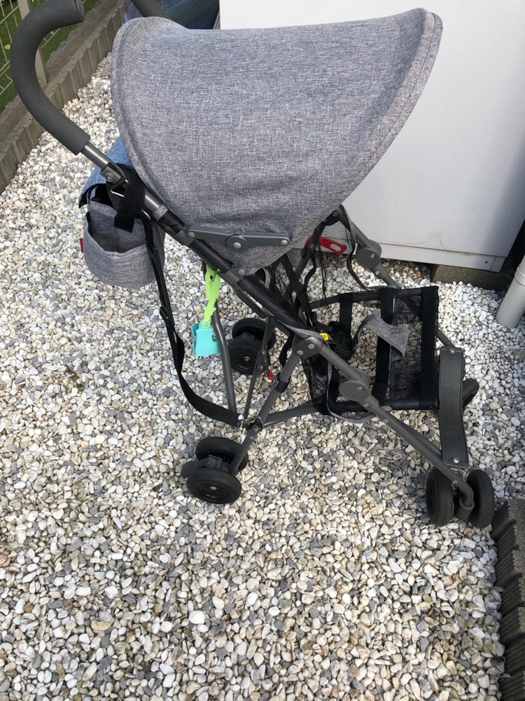 2021年に楽天市場にて購入し、1年ほど使用して自宅保管しておりました。 とても軽量で小回りがきき、セカンドベビーカーとして主に保育園への送り迎え時に重宝しました。 砂利道くらいなら軽快に動きます。 開閉もスムースで、折り畳むと自動ロックがかかります。後輪ロックも付いています。 背面がメッシュなのでムレにくいです。 色はペールグレー、いまは全色売り切れになっています。 販売価格7,979円 同時期にAmazonにて購入した収納ホルダーもお付けします。 まるで純正品のように色がマッチしています♩ ドリンクホルダー2カ所、ポケットや仕切りが沢山あり見た目より大容量です。 以下楽天の公式サイトからの引用です。 ヤトミベビーカー 最軽量約3kgのベビーバギー登場!※自社調べ2.9kg 折りたたみ簡単!とってもコンパクトになるので玄関に置いてもスッキリ! 自立はしませんが後輪ロックをかけて折り畳めば壁に立て掛けておけます♪ 持ち運びがとってもラクラクなストラップ付♪ お出かけ先で使わない時でも肩に掛けて持ち運びが出来ちゃいます♪ 何より嬉しいのは本体の軽さ♪約3kgの最軽量でサッと持ってお出かけOK! 重いベビーカーを持ってのお出かけは大変…ママの負担を少しでも軽減する為 より軽く、持ち運びしやすく、開閉も簡単なベビーカーを作りました! 前輪は360°回転し小回りOK♪あんしんの後輪ロック付・5点式シートベルトや 日差しを防ぐ幌付など赤ちゃんにとってもうれしい機能も付いています! [対象年齢] お座りが出来る7ヶ月頃~36ヶ月まで(15kg未満)