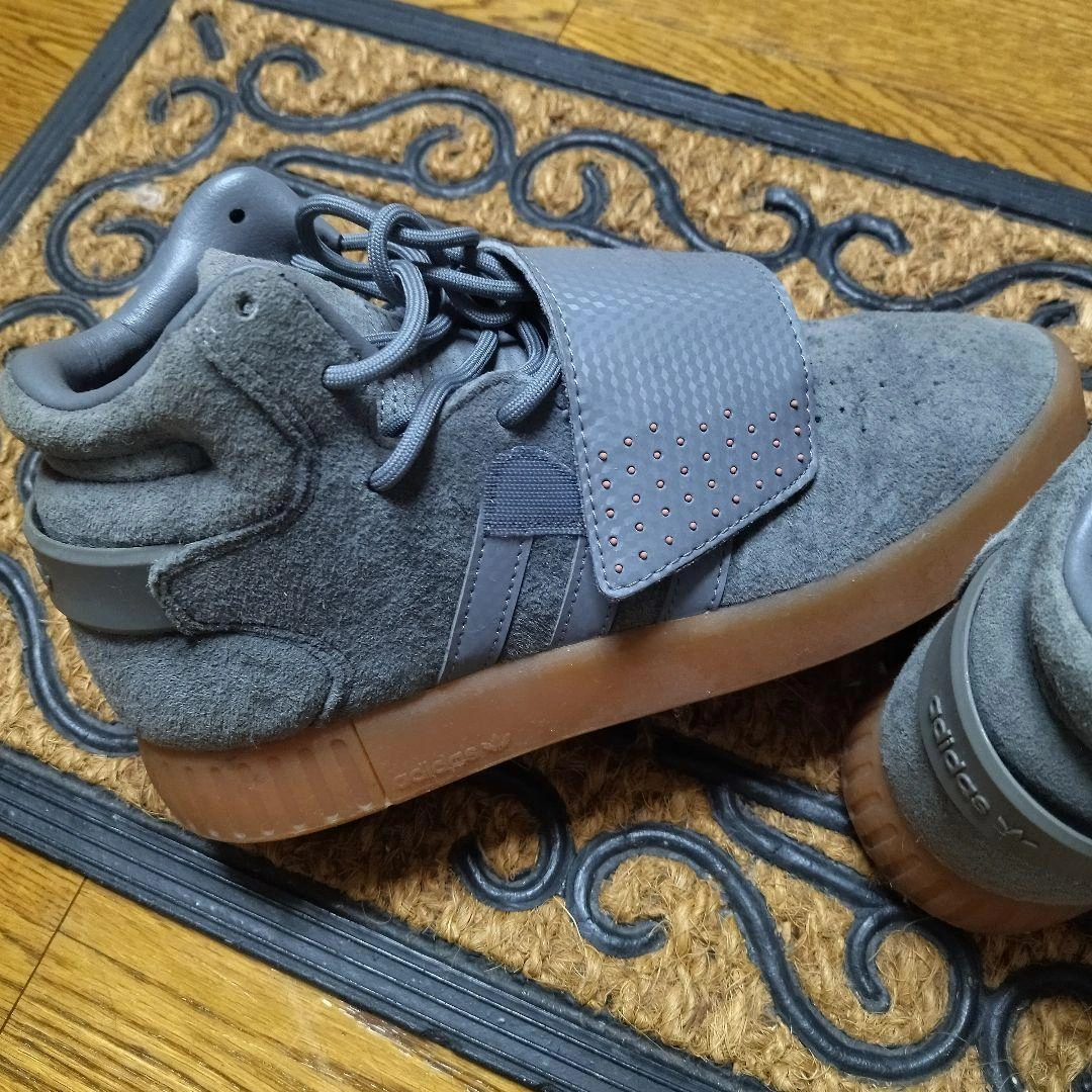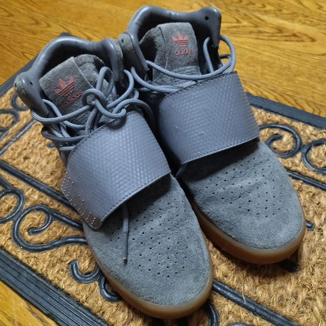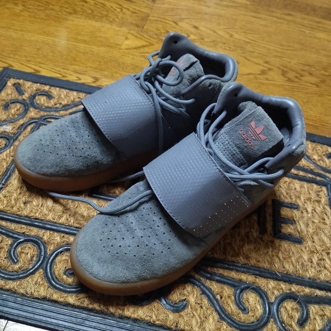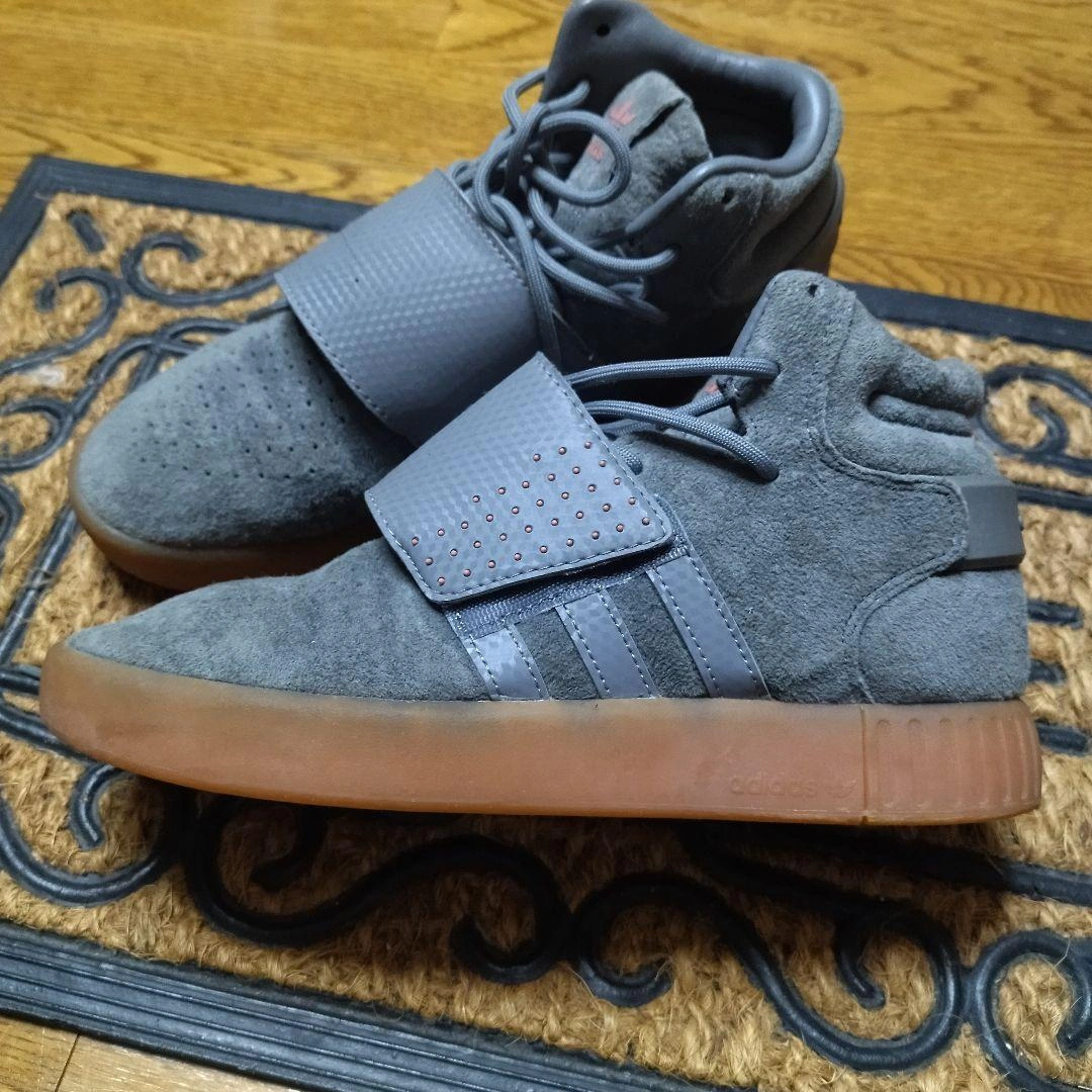 adidas original TUBULAR INVADER STRAP adidas アディダスオリジナル TUBULAR INVADER STRAP スエード素材のグレーのハイカットスニーカーで、マジックテープ留めです。 色は落ち着いたグレー系で、コーディネートに取り入れやすいと思います。 - ブランド: adidas - カラー: グレー - 素材: スエード - ソール: ラバーソール - デザイン: ハイカット - 特徴: マジックテープ留め 自宅での長期保管の為、ご理解頂ける方のみお願い致します。 アディダススニーカー グレー ハイカット ご覧いただきありがとうございます。