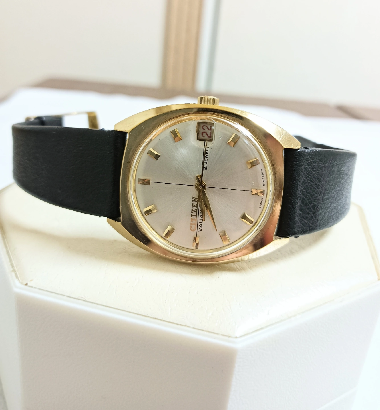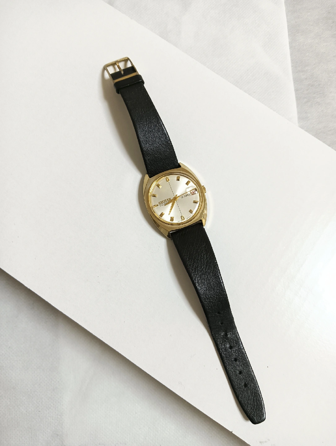 ★★ いつも正常に作動してますが、 巻き上げが少なくなると少し遅れが出る時が有るので、半日程度で巻き上げ推奨となります。 ★★ CITIZEN シチズン VALIANT ヴァリアント 希少な1960年〜70代製 ゴールドGP 手巻き式 ヴィンテージ 腕時計 ストラップはヒルシュ社製。 ★★ 東京オリンピックを控え、日本が1番元気な時代に作られた、CITIZENが誇る手巻き式の時計です。 ★★ 時代物にしては全体的にも良い状態と思います。   腕周り フリー color ゴールドGP&シルバー 現物のみ。