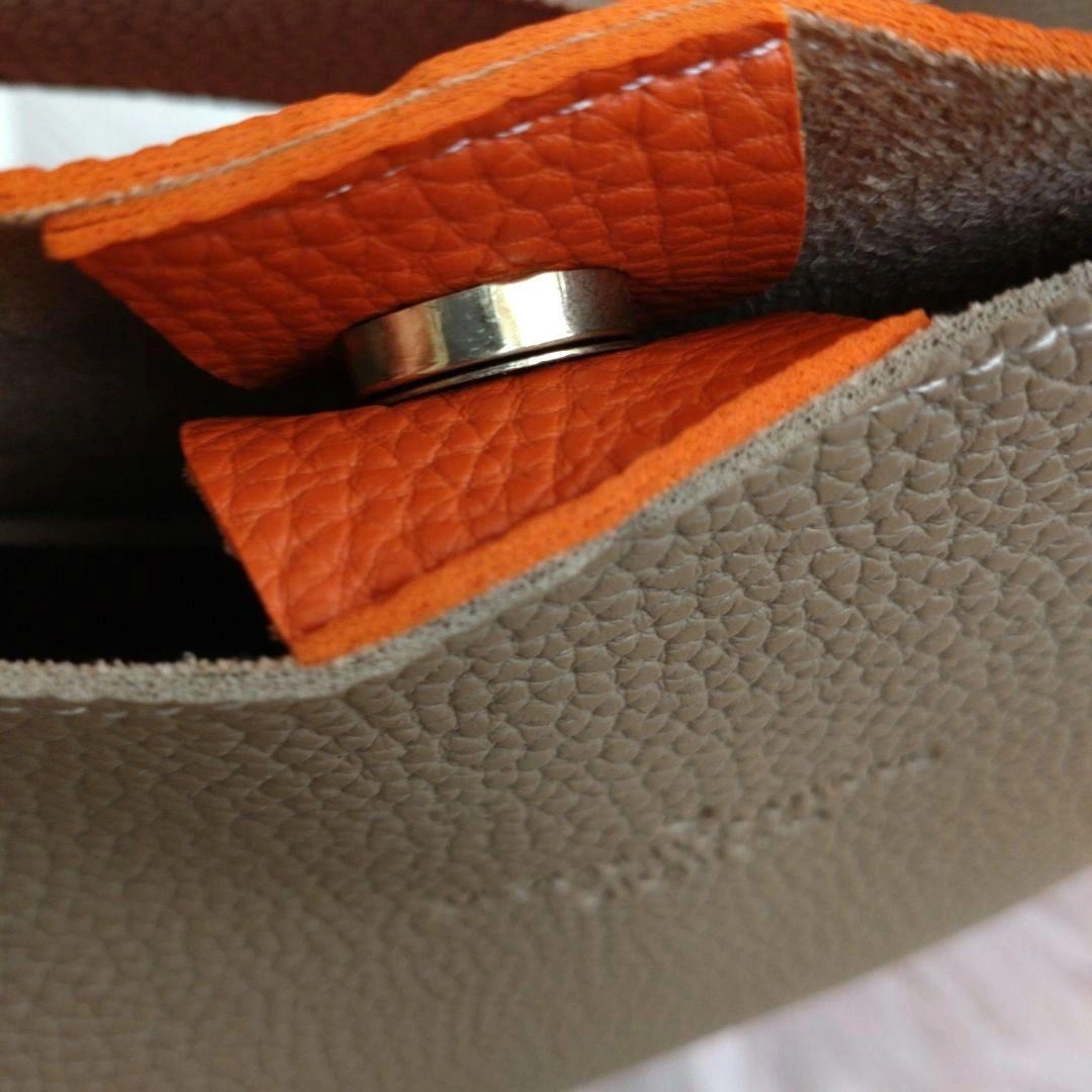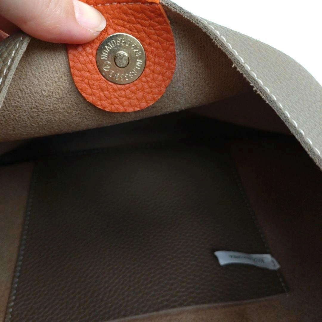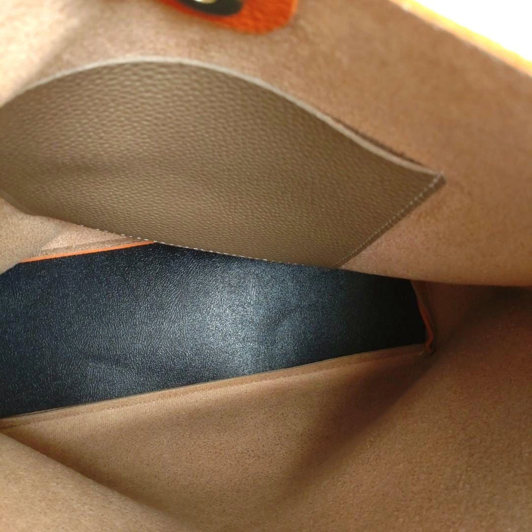 ブラウンとオレンジのレザーショルダーバッグです。 韓国ブランドです。 一度使用しましたが、その後はクローゼットに保管していました。 ◉内側にポケットがあります 【サイズ】 高さ:27〜30cm 幅:24~33cm 底マチ:10cm ショルダー紐の長さ:32cm ※素人採寸のため多少の誤差はご了承く ださい。 中古品・自宅保管のためご理解いただける方のご連絡をお待ちしております。