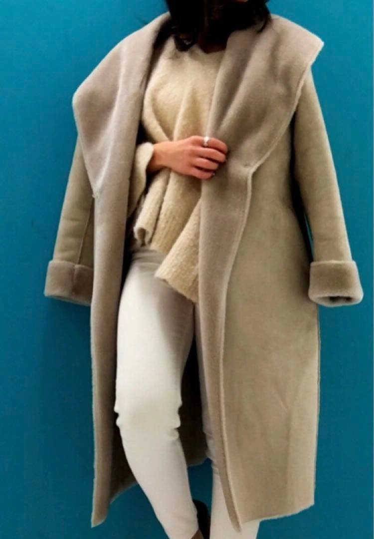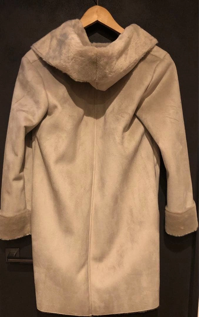 OUVRAGE CLASSE TOKYO のフェイクムートンコートです。 軽くて見た目も暖かなムートンコート。毛足の整った裏地のボア部分は、柔らかな肌触りで着心地も抜群です。ヒップラインまでカバーするロング丈。ヌーディーな色と相まって、カジュアルになりすぎず、上品な印象です。 着丈 約90cm 定価 約3万円 数回着用後、プレミアムクリーニング済です。 (クリーニングのカバーは破れてしまっ たので、付きません) used品のご理解のうえ、ご購入ください。