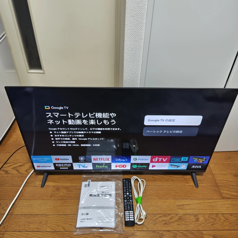 ■TCL 40V型 Google TV「40L5AG」 2024年製のため、比較的新しい年式のスマートTVです。 ---------------------------- 【商品状態】 ・多少の細かい傷や汚れなどはあるかもしれませんが、比較的美品だと思います。 ・動作確認済み、問題なく使用可能です。 ただ、完美品を求める方、神経質な方はご購入をお控えください。 ---------------------------- 【付属品(完備)】 ・電源ケーブル ・リモコン(電池付き) ・B-CASカード(本体に装着済) ・取扱説明書 ・アンテナケーブル ※全部揃っていますので到着後、すぐにご利用頂けます。 ---------------------------- 【製品情報】 ・型番:TCL 40L5AG ・画面サイズ:40インチ ・解像度:フルHD ・Google TV搭載(YouTube, Netflix, Prime Videoなど対応) ・HDMI×2/USBポート×1/Wi-Fi対応 ・軽量&省スペース設計 ---------------------------- ■早い者勝ちです! ご購入後のキャルセルは受け付けておりませんので、よくご確認頂き、お間違えのないようにご購入をお願いします。 また、商品すり替え防止などの為、返品や交換は致しかねますのでご了承下さい。宜しくお願い致します。 ★美品のTCL 40L5AGは人気のため、すぐに売り切れる可能性があります。ぜひこの機会にご検討ください! 【受け渡し場所】 場所を設定させて頂いておりますが、持ち運びが大変な方はご自宅付近までお持ちすることもできる場合もございますので、お気軽にご相談頂ければと思います。