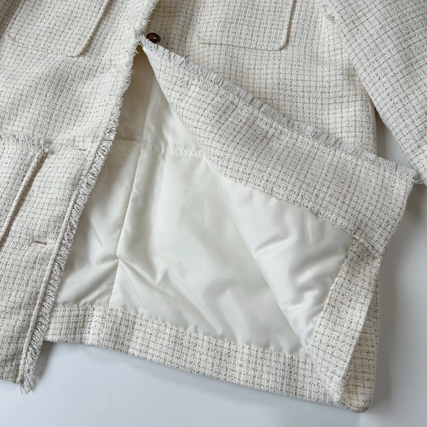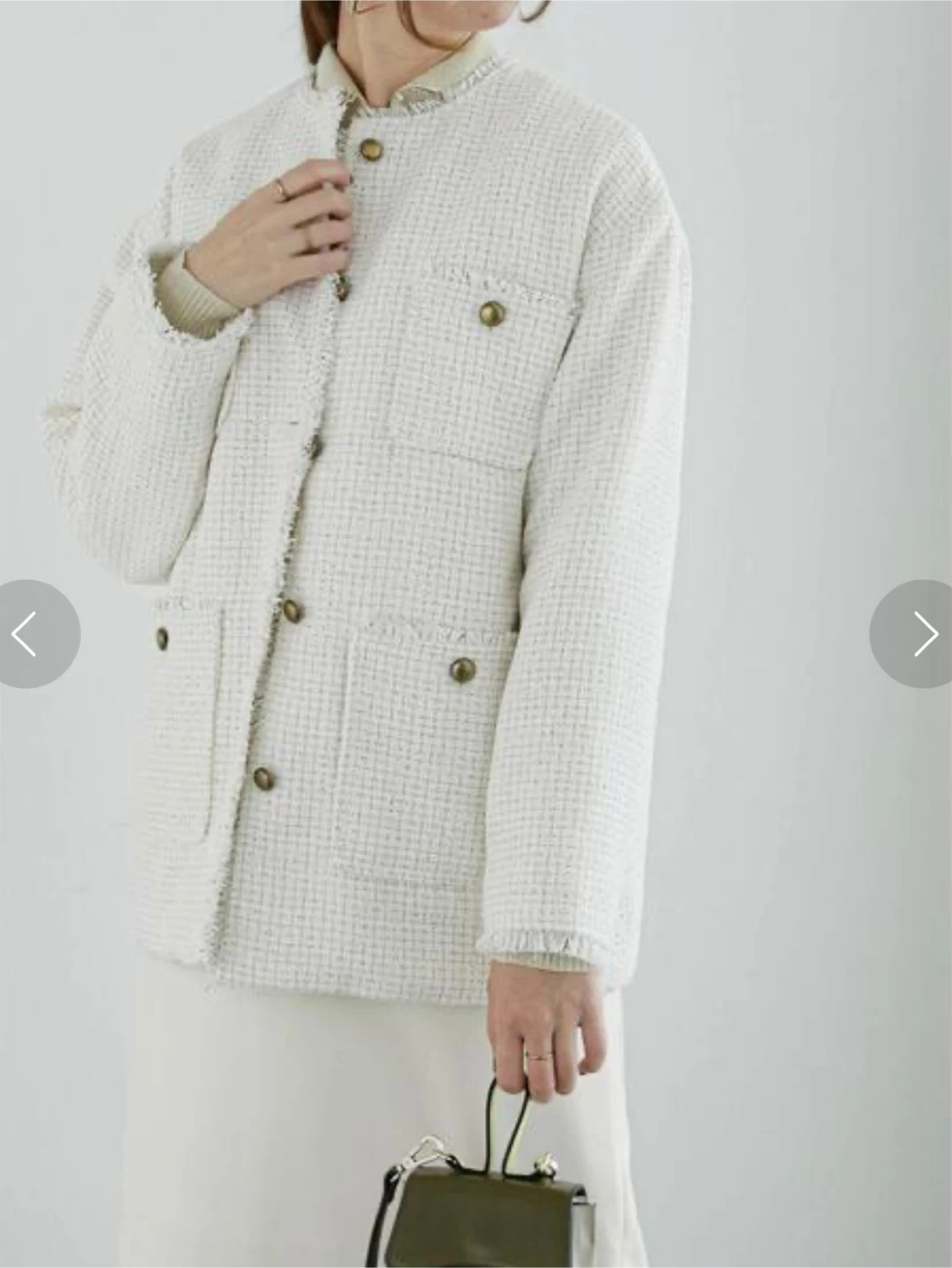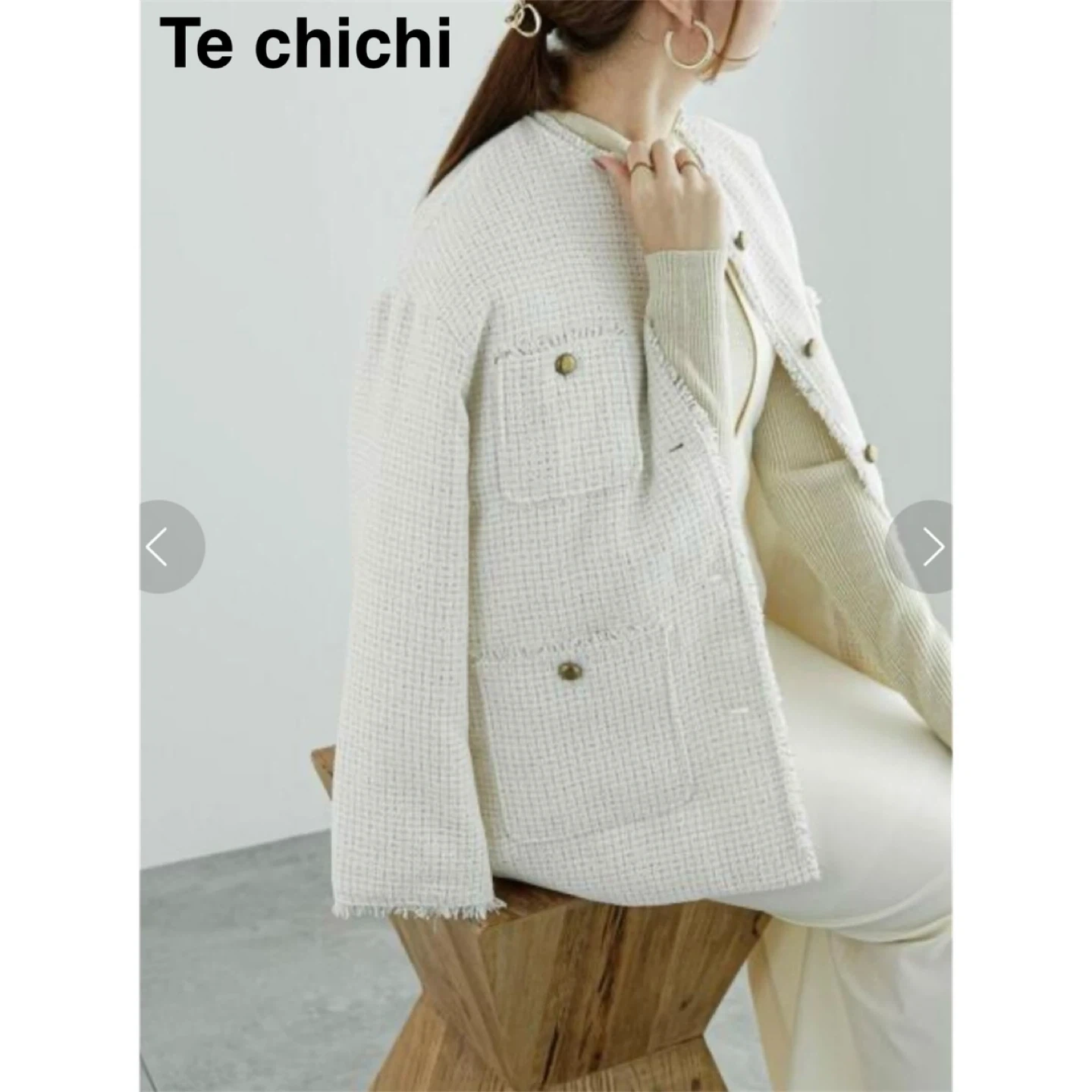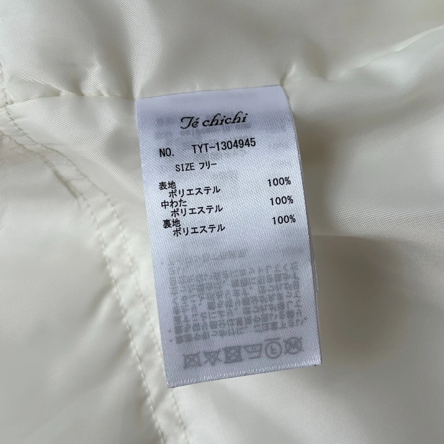 Te chichi テチチのモールツイードパデッドジャケットF/ホワイトです。 【状態】 1度、短時間ですが着用しております。着用による傷や汚れは見当たりません。使用感はほとんど感じられないコンディションかと思います。 定価17,490円(税込) 上品な印象のモールツイードジャケット。モコモコしすぎない中綿入りで今の時期、暖かく着ていただけます。 【平置き実寸】 着丈67cm 身幅54cm 肩幅51cm 袖丈52cm