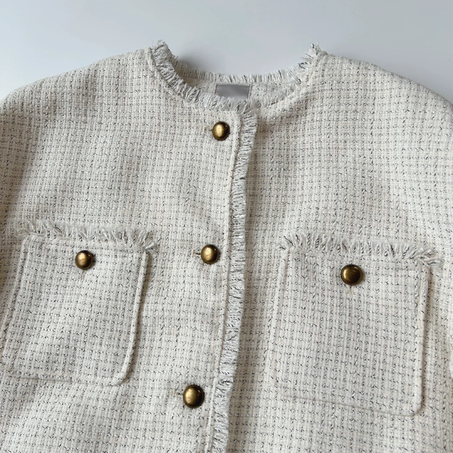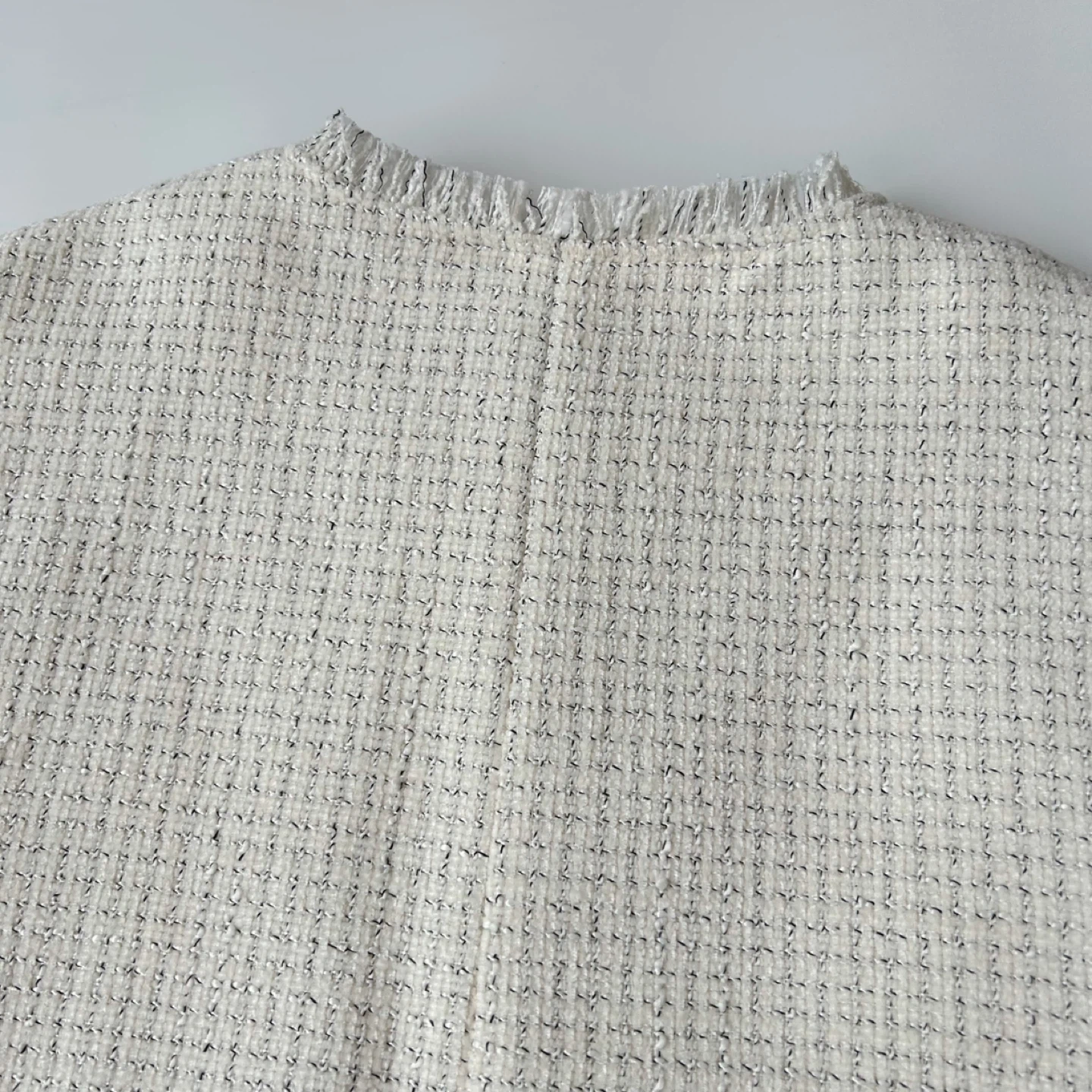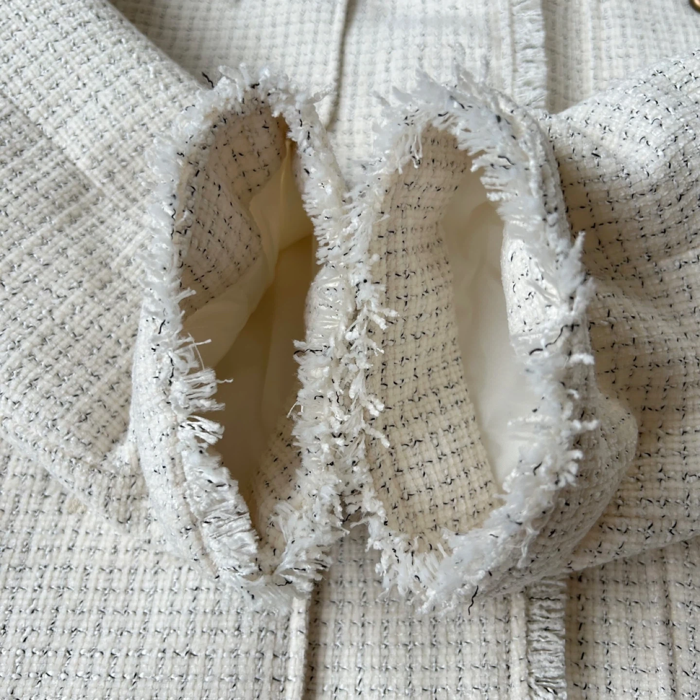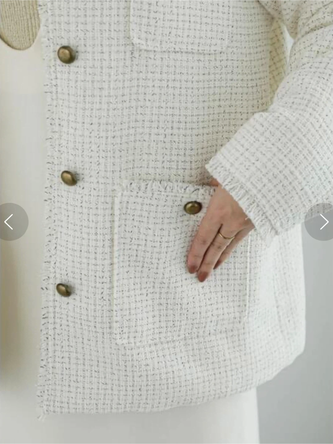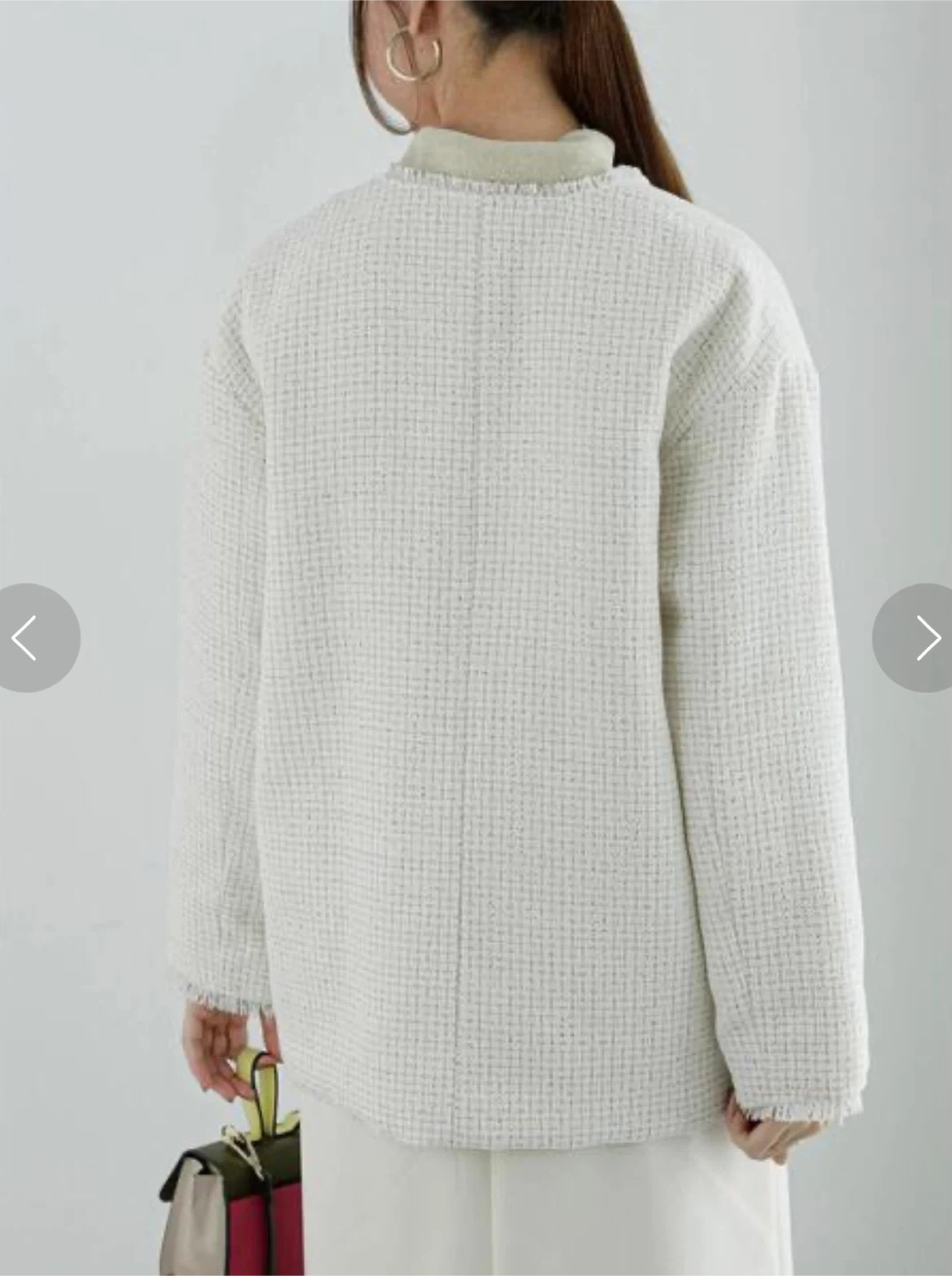 Te chichi テチチのモールツイードパデッドジャケットF/ホワイトです。 【状態】 1度、短時間ですが着用しております。着用による傷や汚れは見当たりません。使用感はほとんど感じられないコンディションかと思います。 定価17,490円(税込) 上品な印象のモールツイードジャケット。モコモコしすぎない中綿入りで今の時期、暖かく着ていただけます。 【平置き実寸】 着丈67cm 身幅54cm 肩幅51cm 袖丈52cm