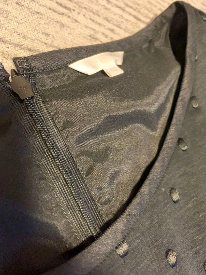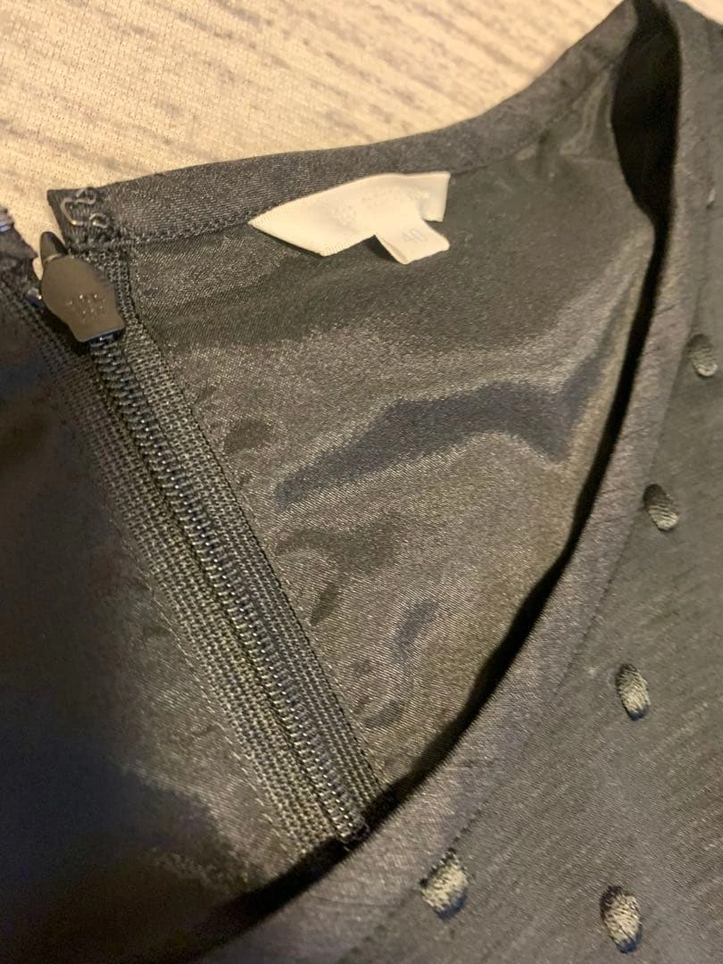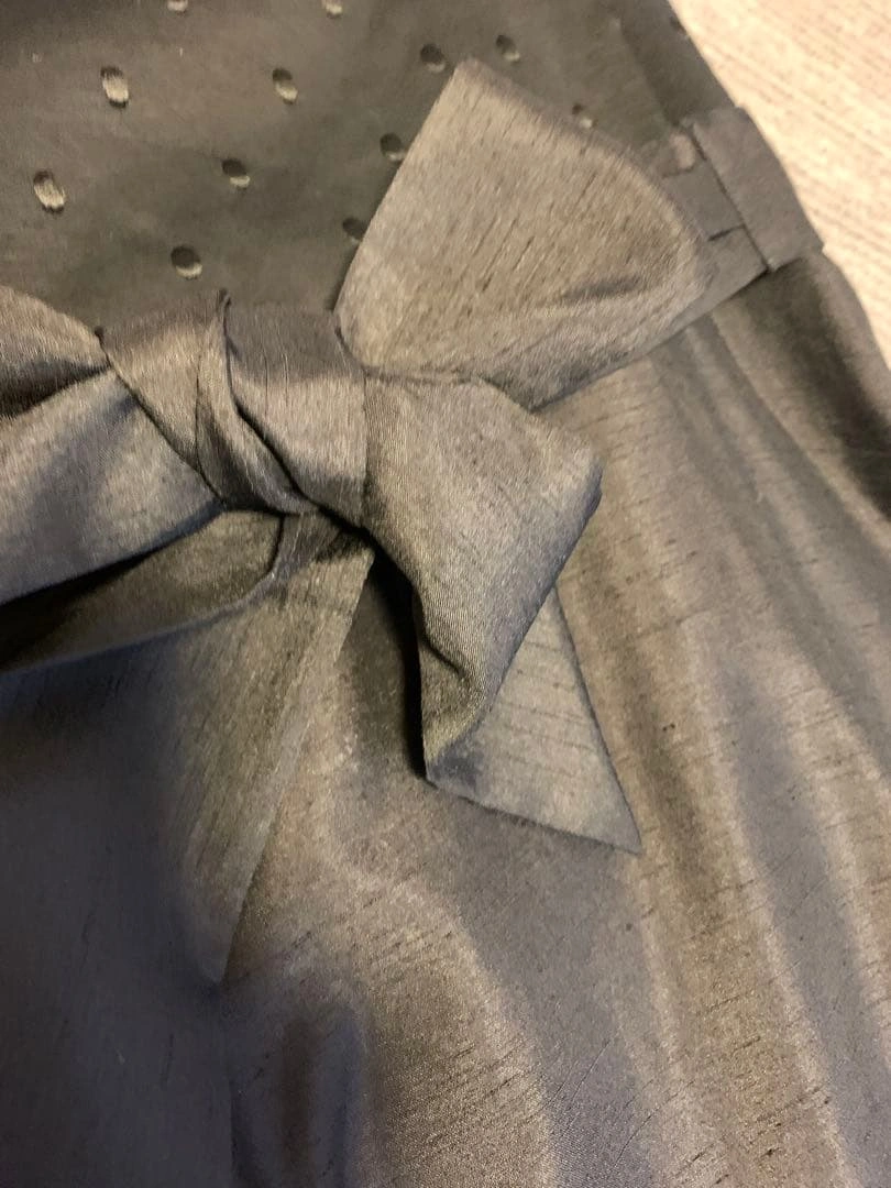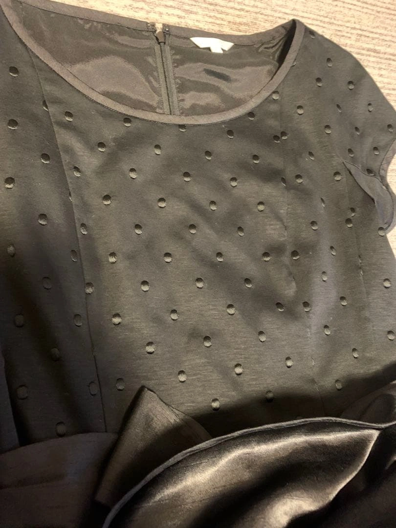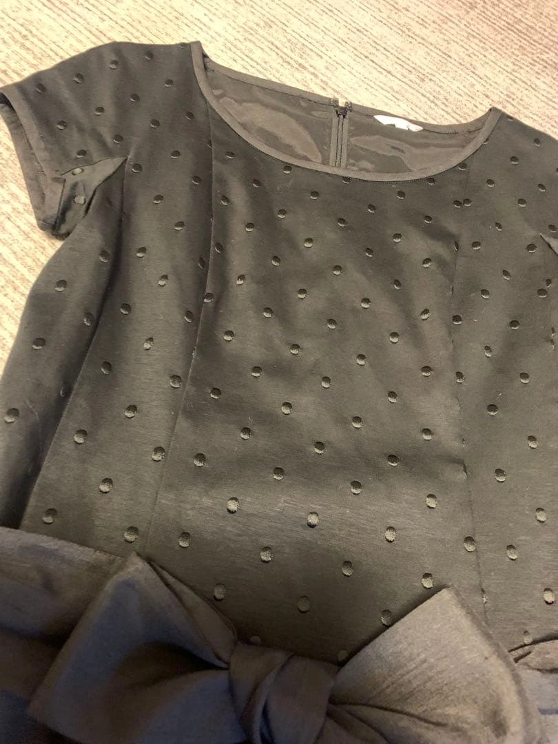 トップスはニット生地、ボトムスはさらっとしたようなスカートの切り替えワンピースです。 スカートと共布の光沢のある生地のリボンが付いています。 わずかに着用感はありますが、全体的にしっかりしていると思います。 背中チャック 平に置いた状態で身幅44 ウェスト40 丈93 ご希望の方はお気軽にご連絡ください。