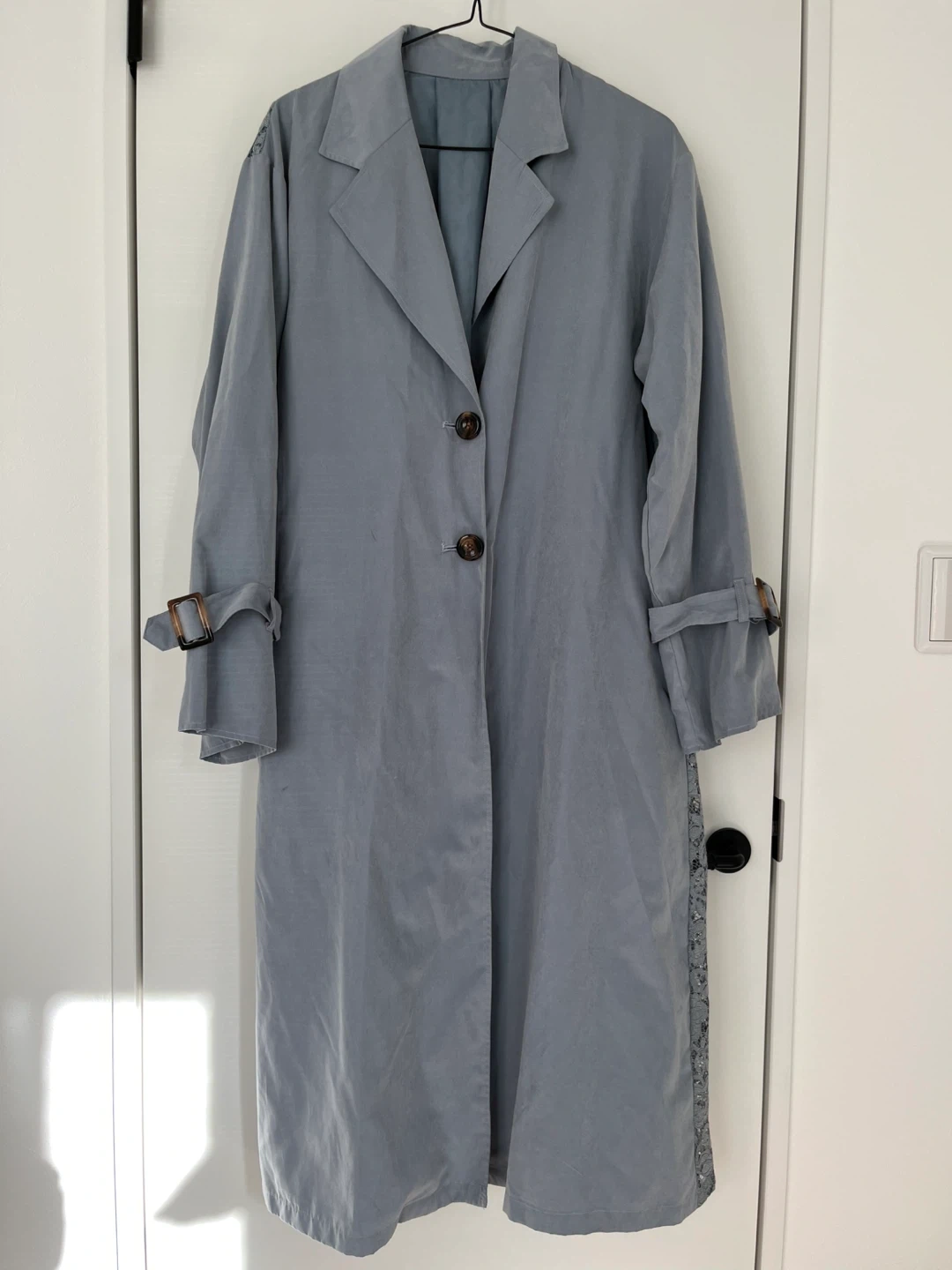 コートです。 ・色:グレー ・状態:使用感あり 中古品であることをご了承ください。 薄手のコートです。 背面は花柄になっていて、手首の所と腰にベルトが付いています。取外し可能です。 スーツの上に羽織ったり、お祝い事の服装の羽織りで活躍出来そうなコートだと思います。 丈の長さなど気になる事がありましたら気軽にメッセージ下さい♪