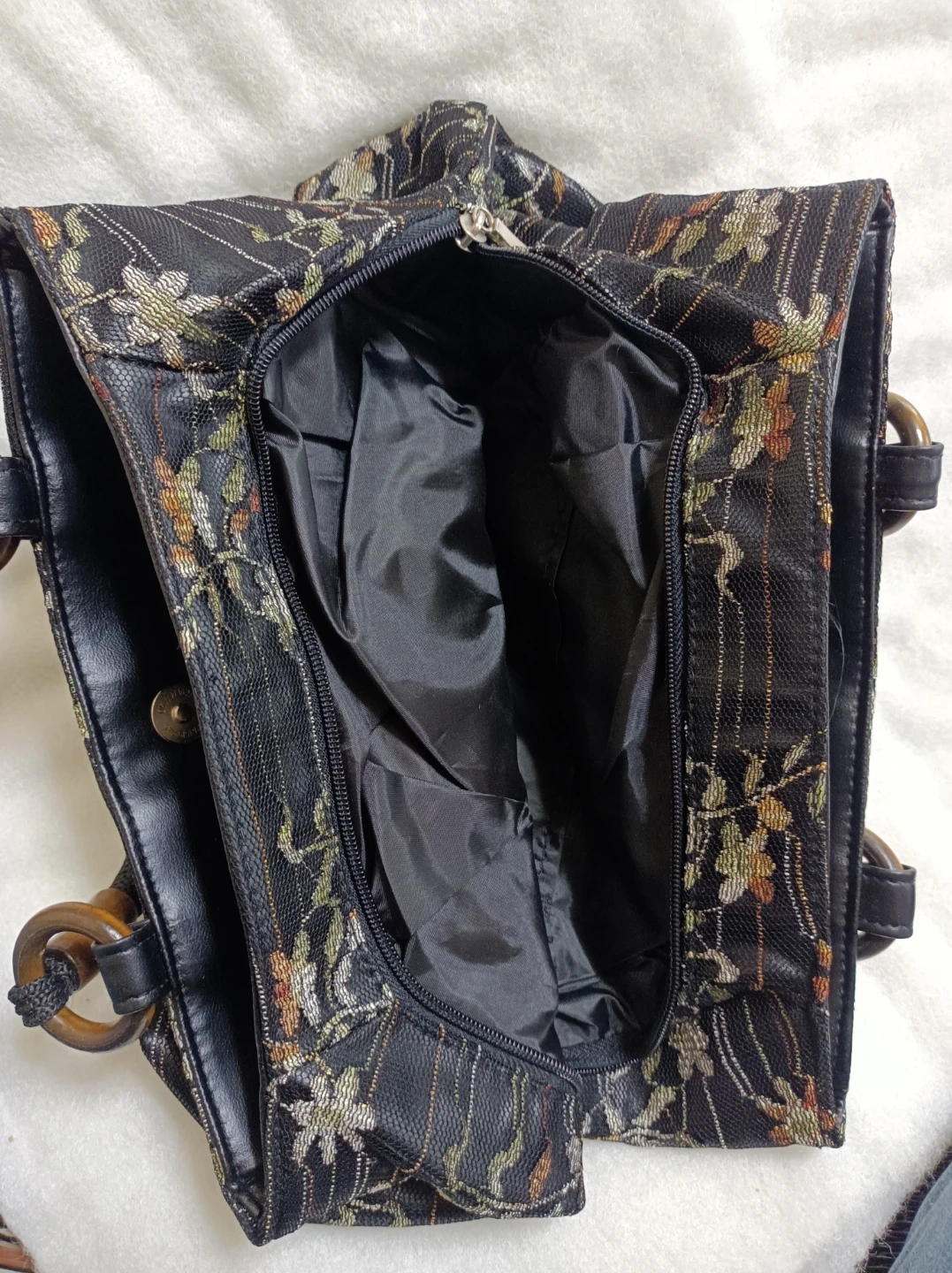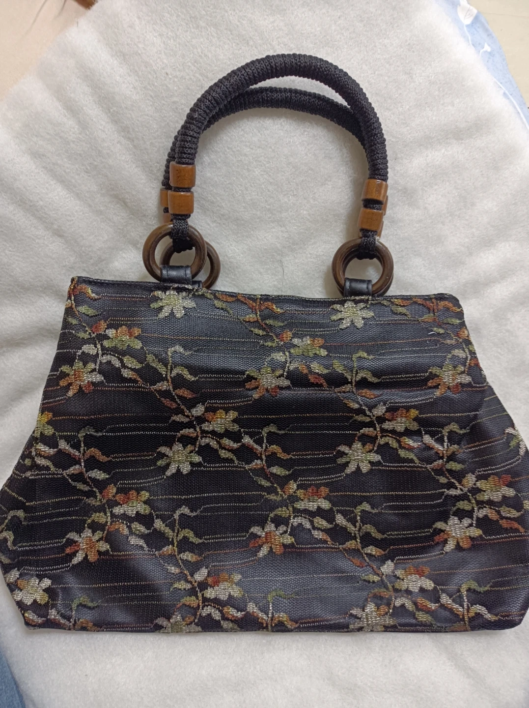 イタリア製 黒色フェルトバッグ ファー飾り付き
