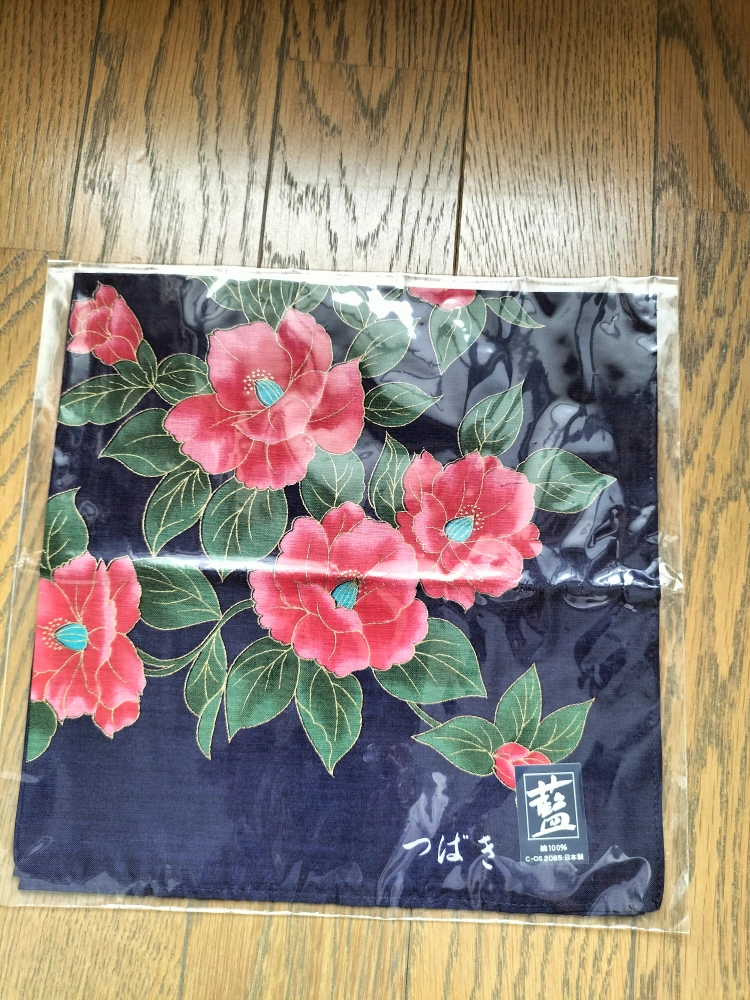 小さいお盆 24×24cm 赤い椿に金色の花芯や枝の絵