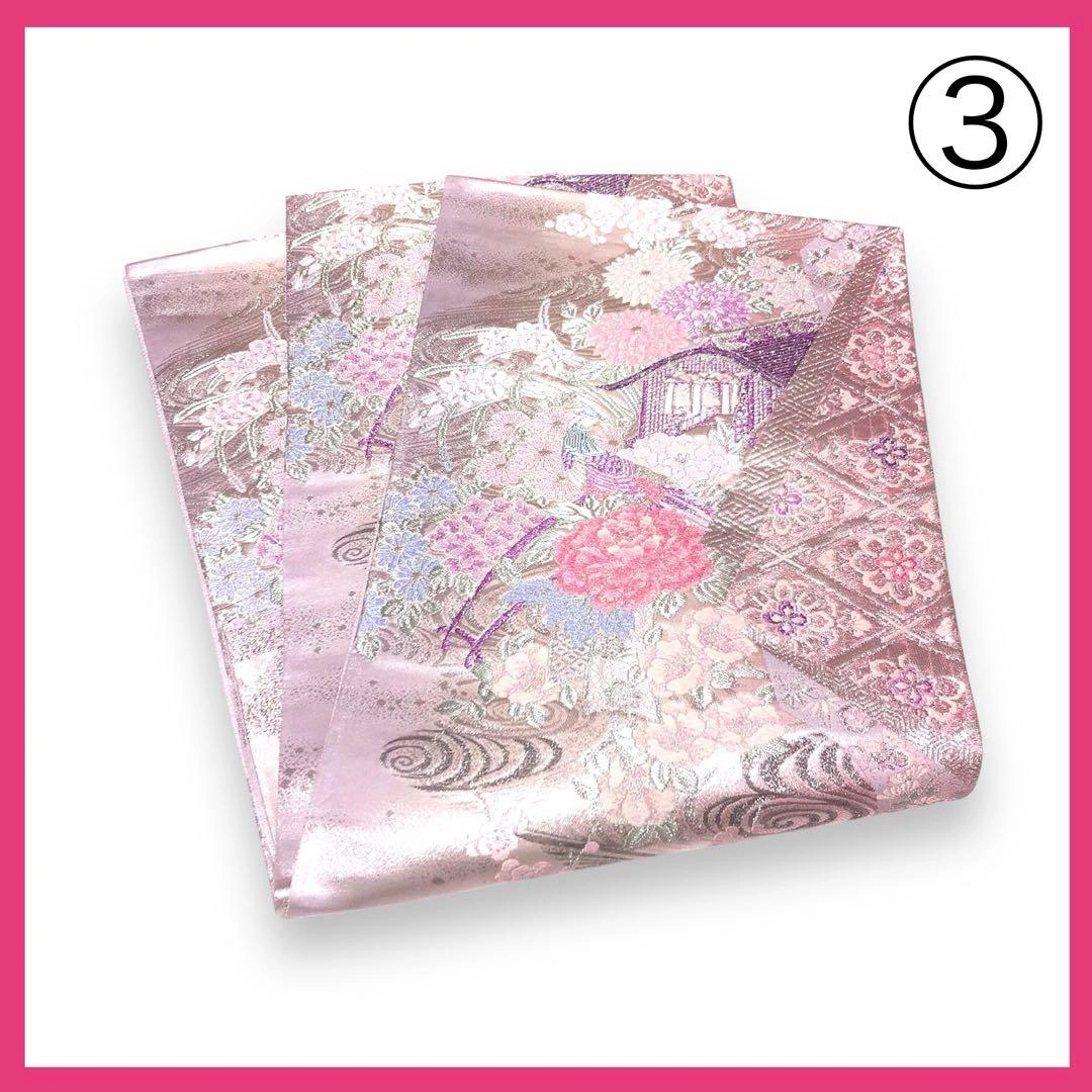 【袋帯】おまとめリメイク用4種/西陣 佐賀錦も入ったセット お得‼︎リメイク用の袋帯おまとめ4種セット‼︎ サイドの糸を解く手間要らずでリメイクも楽々♡ 下記をお読み頂き、ご不明点が御座いましたら、お気軽にお問合せ下さいませ(*^^*) ・全てリメイク用 ・全て着用不可 ・全て正絹 ・全てユーズド帯 ・バラ売り不可 ① 表側&裏地あり※ サイドを開いてます ② 西陣織No.7162 辻ヶ花:表側のみ ③ 注)プラチナ箔:表側のみ ※端から約35cm程使用してます ④ 注)佐賀錦:表側の柄のみ ※ 六通表側の無地部分を使用 ※ 3つに分かれています ※ 1枚目約46cm / 2枚目約51cm / 3枚目約120cm ・リメイク用まとめ売りにつき、個々のサイズや汚れ等にはお答えでき兼ねます ・簡易包装にて発送 【受渡し場所】笹塚駅 【受渡し日程/時間帯】幅広く対応可 #リサイクル着物 #まとめ売り #リメイク素材 #帯 #袋帯 #ハンドメイド #着物リメイク素 #帯リメイク素材 #帯まとめ売り #袋帯まとめ売り #西陣 #佐賀錦 #マトメ
