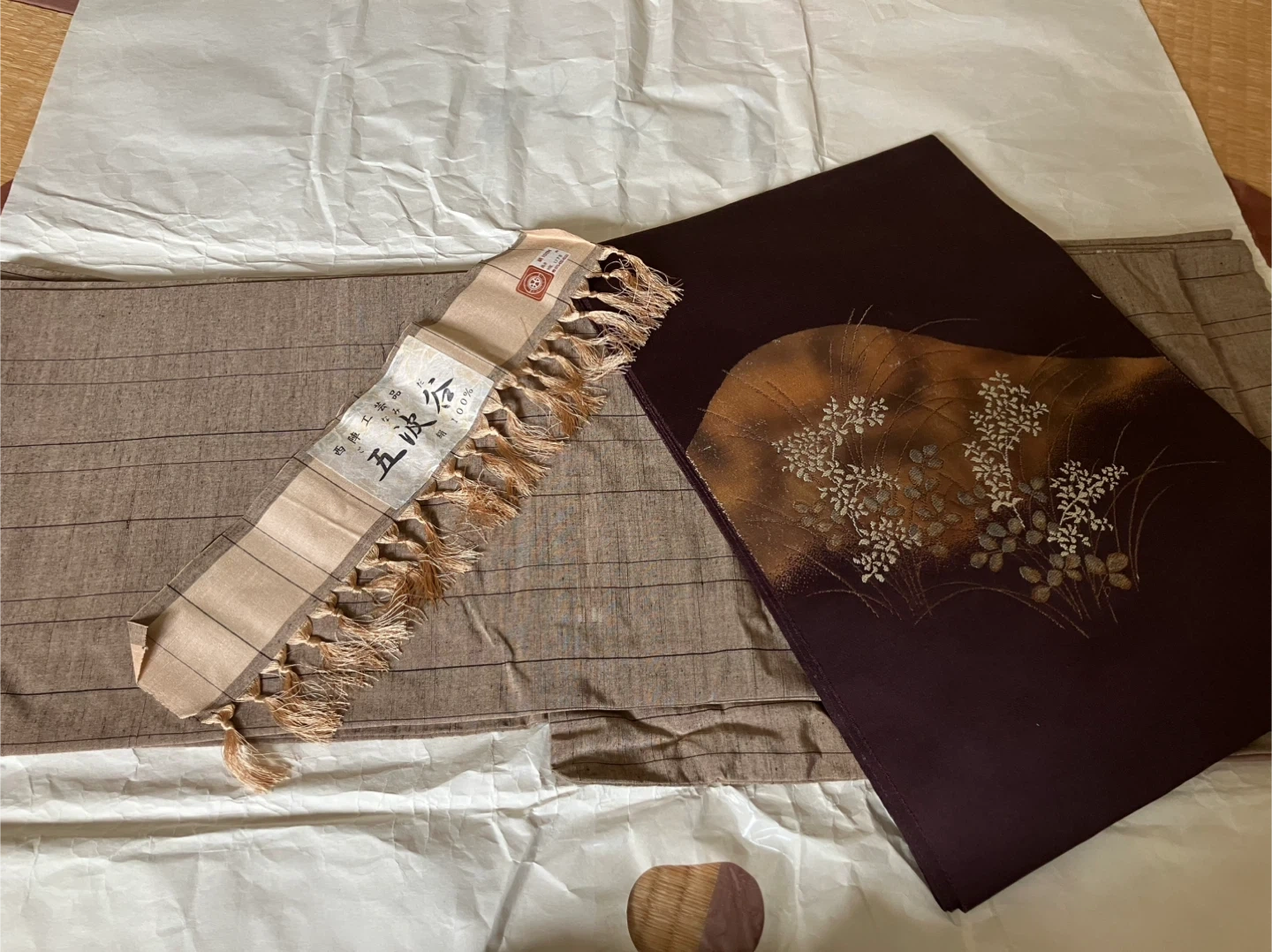 花柄&ドット柄 シルクスカーフ 2枚セット