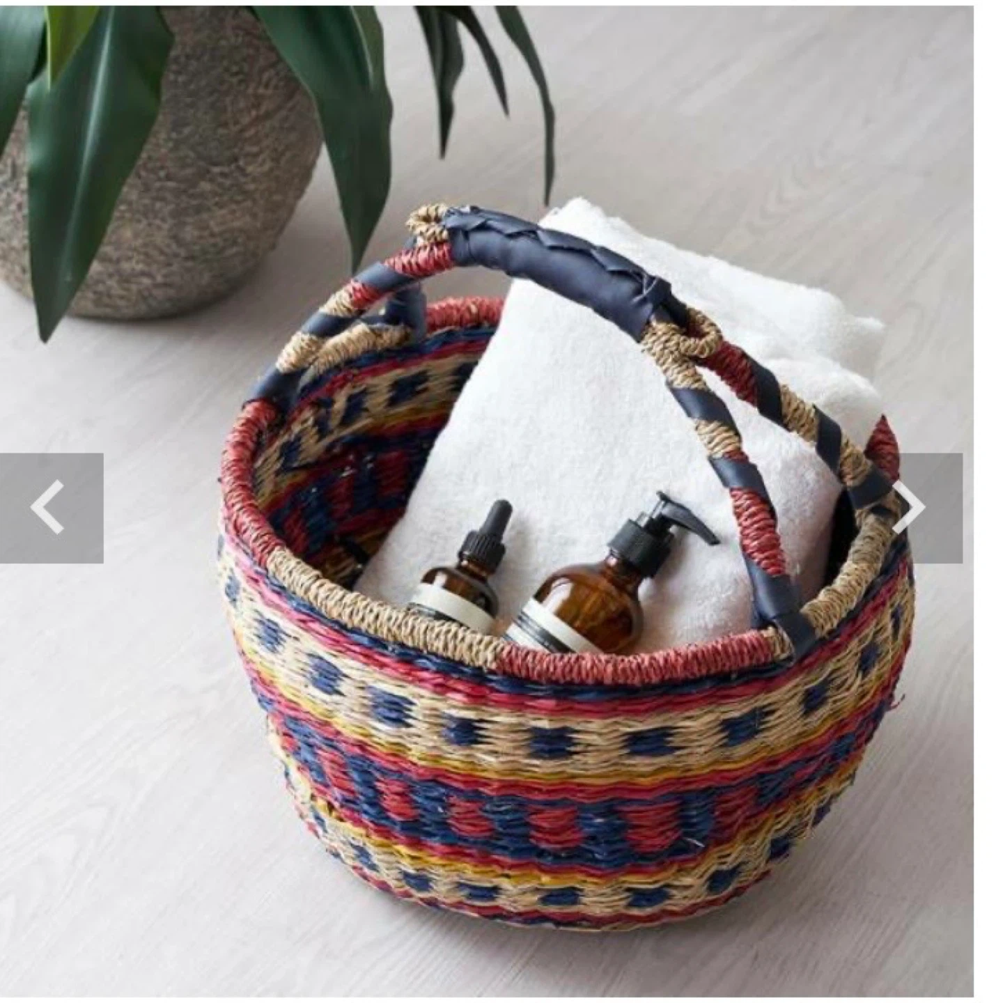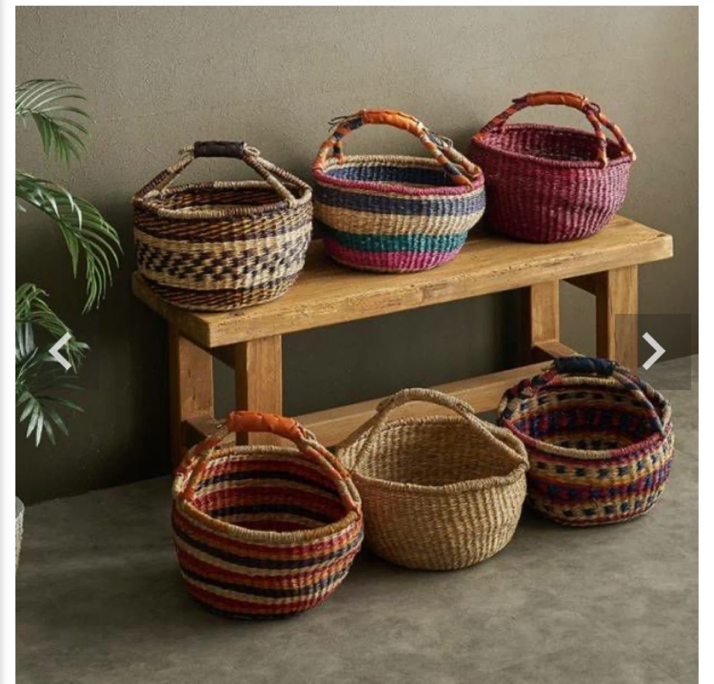 ユーズドのシーグラスの大きいカゴ、 MとLサイズひとつずつの2個セットです。 写真2枚目が手元にある実物のものです。 ハンドメイドのもともと味のある作りで、 見せる収納として活躍できる大きさです。 引き渡しは、当方自宅付近または 永福町駅か方南町駅の改札でお願いいたします。 お気軽にお問い合わせくださいませ。