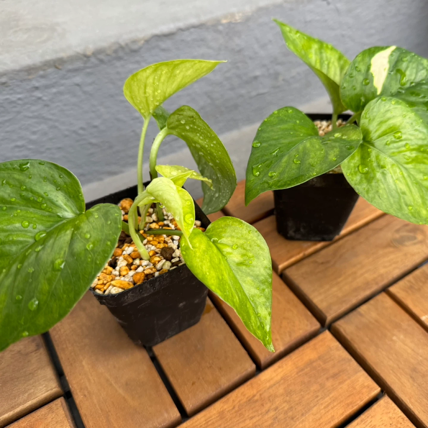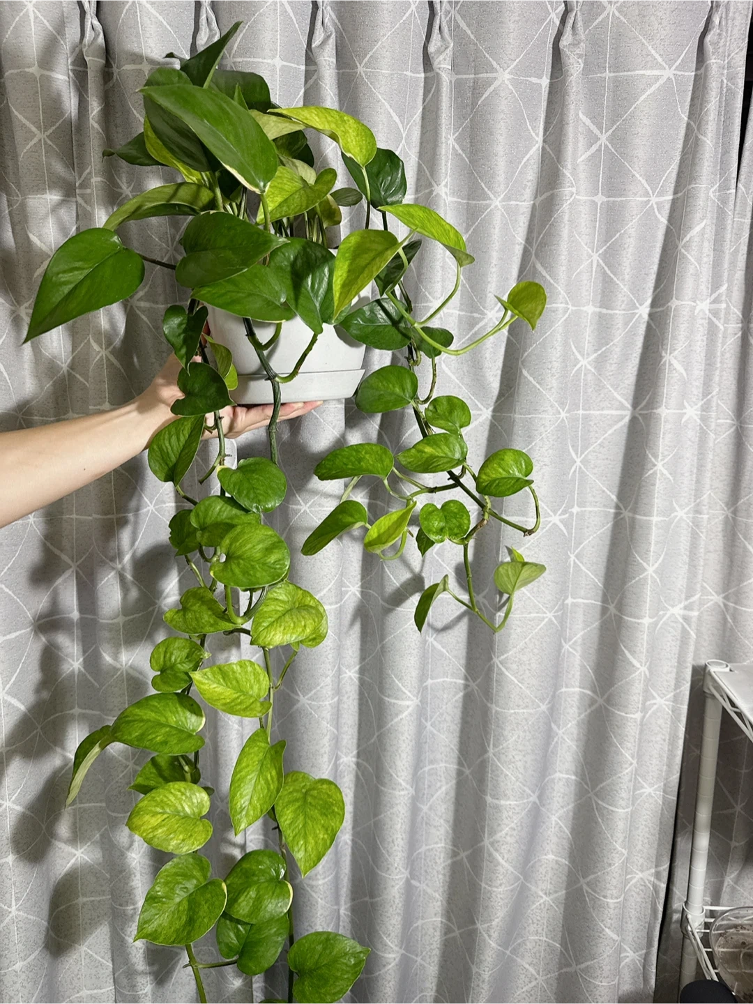 自宅で育てていた「ポトス テルノハナハナ」の株分けです。 あまりに伸びすぎてしまったためお裾分けできればと思い、出品いたします。 1鉢500円でお譲りいたします。 全部で10鉢ほどありますので、複数鉢ご希望の場合はお値下げいたします。 株によって葉の枚数や状態に若干バラつきがありますので、お写真と同じもの ではない可能性があります。 あらかじめご了承ください。 画像4枚目が株分け前のポトスになりますので、伸びればこれくらいになるかと思います。(剪定せず1年間で30cm以上伸びました) 小さめの鉢ですが、観葉植物用の土に植えておりますので、しばらくは植え替えせずにお楽しみいただけるかと思います。 京王新線初台駅付近での受け渡しを予定しております。
