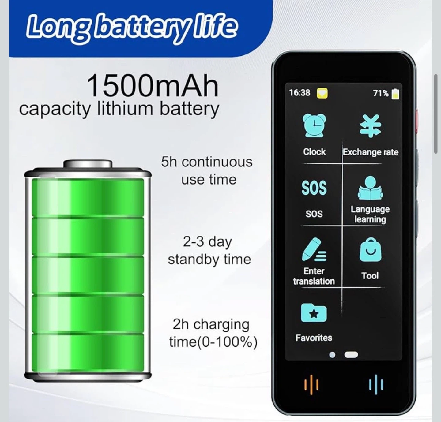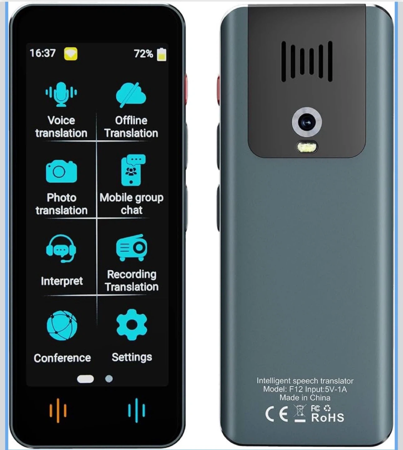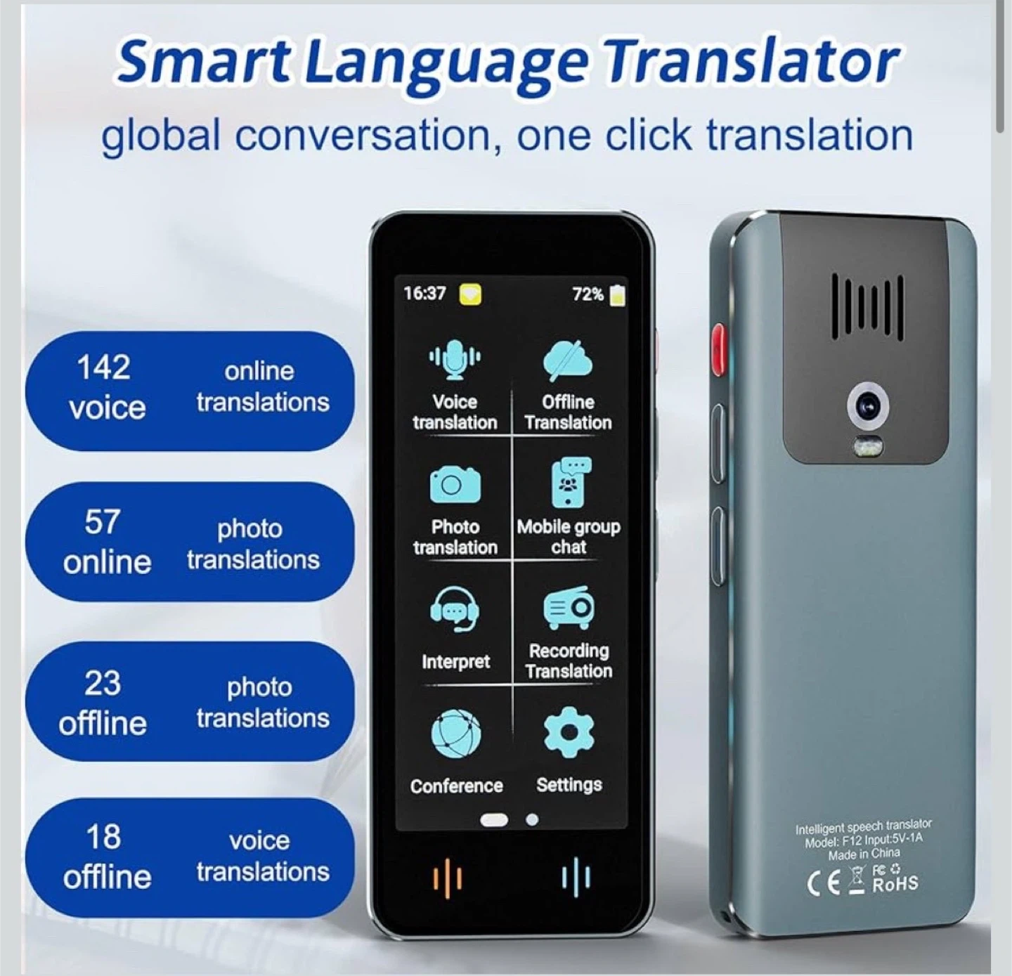 数ある中からご覧頂きありがとうございます(^○^) ◎値下げ交渉◎ ◎コメントなし、即購入大歓迎 ◎送料無料!安心の匿名配送 *。*。 \1品限り!!早い者勝ち!!/ ★商品説明★ 【142言語対応】この言語翻訳デバイスは、最大98%の精度と0.5秒未満の応答時間で142言語のリアルタイム双方向音声翻訳をサポートし、迅速かつ正確な翻訳結果を保証します。 【オフライン翻訳機能】:翻訳機は18種類の常用言語のオフライン翻訳を提供【スペイン語、フランス語、イタリア語、ポルトガル語、オランダ語、英語(アメリカ)、英語(イギリス)、イギリス(カナダ)、ドイツ語、簡体字中国語、繁体字中国語、台湾語、日本語、韓国語、ロシア語、タイ語、インドネシア語、ヒンディー語】、Wi-Fi接続なしで使用でき、緊急時の言語コミュニケーションに最適 【画像翻訳】:500万画素のハイビジョンカメラと先進的なOCR画像認識技術を搭載し、画像上のテキストを識別して翻訳することができる携帯型言語翻訳装置。57言語のオンライン写真翻訳と23言語のオフライン写真翻訳をサポートし、ユーザーが異なる言語のメニュー、道路標識、雑誌、ラベルを読むのに便利 【バッテリー寿命が長い】:高品質1500 mAhバッテリーを搭載し、4-5時間連続稼動可能。TYPE-C充電インタフェースを使用すると、2時間で充電できます。待機時間は2~3日で、ビジネス旅行、語学学習、リゾート旅行に最適です 【使いやすい】:このスマート言語翻訳機は小型で軽量(4.9 x 1.9 x 0.47インチ、0.22ポンド)、4インチHD IPSタッチスクリーンを搭載しており、すべての機能が画面で操作できる。インターフェイスのデザインはシンプルで直感的で、すべての人に適しています