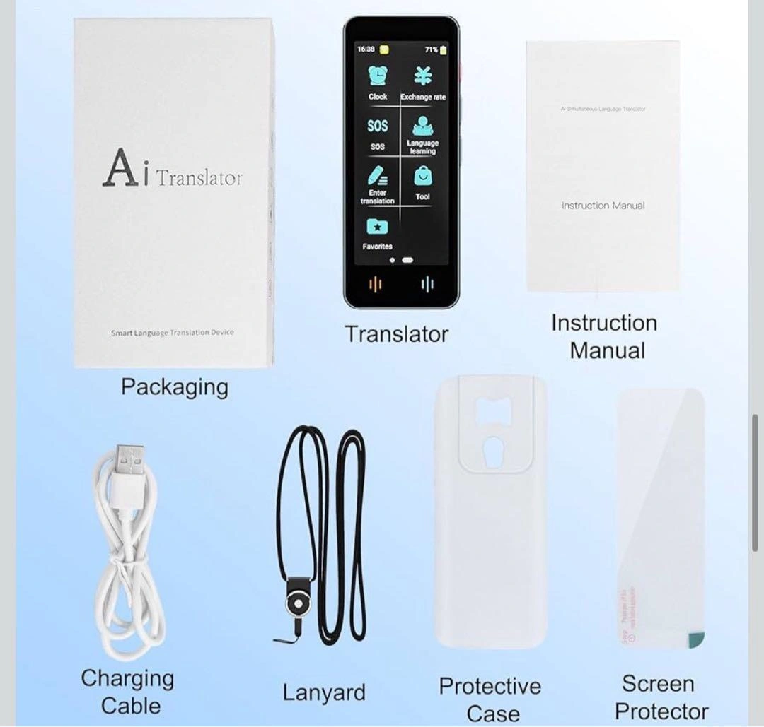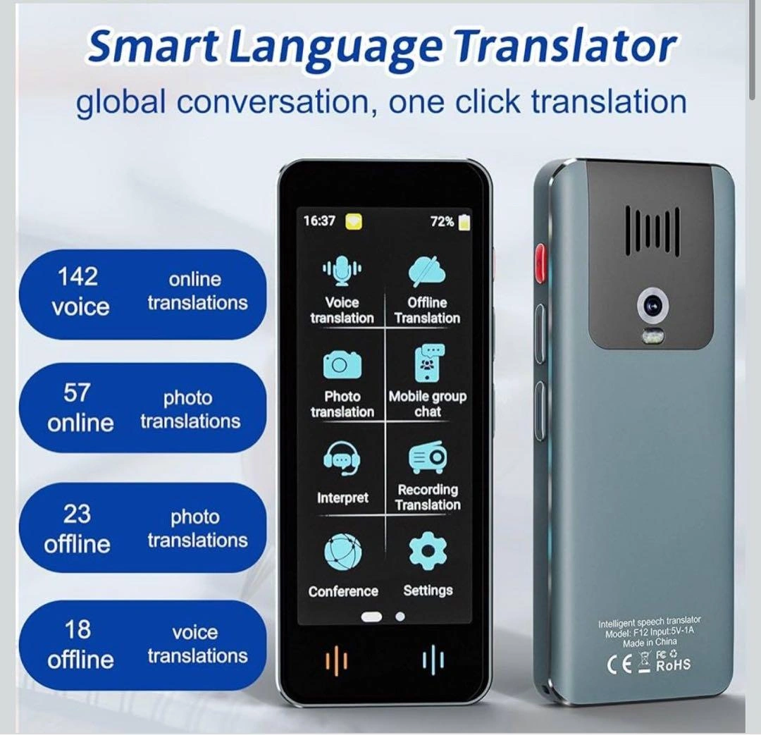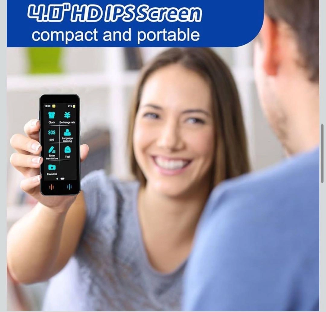 ご覧頂きありがとうございます。 142言語に対応した言語翻訳デバイスです。最大98%の精度でリアルタイム双方向音声翻訳をサポートします。 オフライン翻訳機能:18種類の常用言語に対応(スペイン語、フランス語、イタリア語、ポルトガル語、オランダ語、英語、ドイツ語、中国語、日本語、韓国語、ロシア語、タイ語、インドネシア語、ヒンディー語)。Wi-Fi接続なしで使用可能。 画像翻訳:500万画素のカメラ搭載。57言語のオンライン写真翻訳と23言語のオフライン写真翻訳をサポート。 バッテリー:1500 mAh。4-5時間連続稼動可能。TYPE-C充電。 4インチHD IPSタッチスクリーン搭載。インターフェイスはシンプルで直感的です。 ご不明点はお気軽にお問い合わせください。