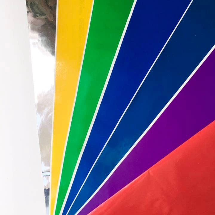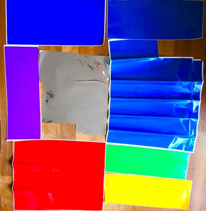 カッティングシート 7色です。 室内用。 フィルムの裏面に粘着材をあわせた単色のカラーシートです。 赤、青緑が折れ目、シルバーが浮いている箇所があります。 サイズ(約) •透過性あり 赤 44.8×38cm 青緑 44.8×17.5cm、44×57cm(1辺長い所) 黄 44.8×15cm 緑 44.8×14cm •やや透過性あり 青 44.8×20.4cm 紫 44.8×15.2cm 2番目の画像で状態をよくご確認頂き、ご理解頂ける方のみご購入宜しくお願い致します。 ご希望の方はお気軽にご連絡ください。