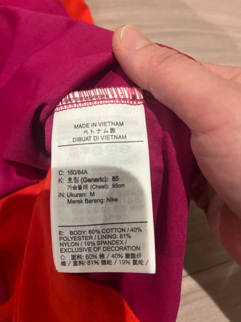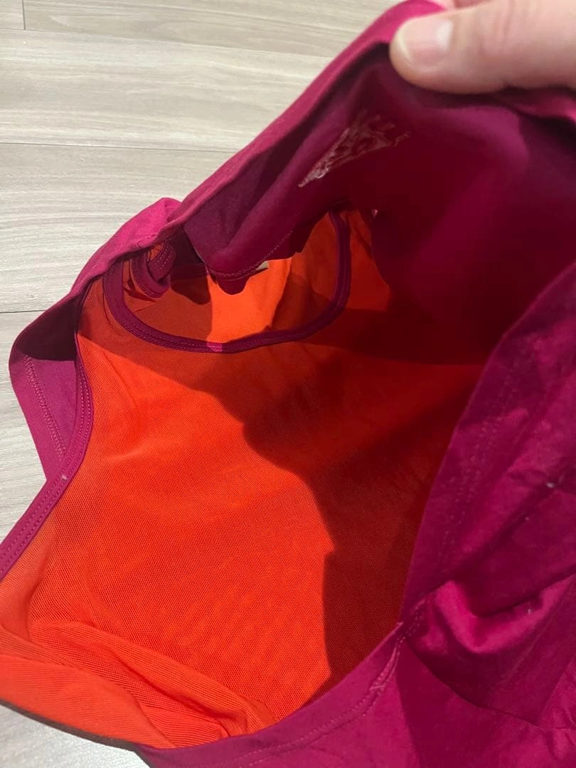 Nike製のMサイズタンクトップです。 コットン混紡素材で快適な着心地です。 試着のみ。 - ブランド: Nike - サイズ: M - 素材: ボディ: 60% コットン / 40% ポリエステル, 裏地: 81% ナイロン / 19% スパンデックス - 色: 赤紫 / オレンジ おりシワがあります。 肩幅29.5cm、着丈56cm、身幅38cm インナー付き ご希望の方はお気軽にご連絡ください。