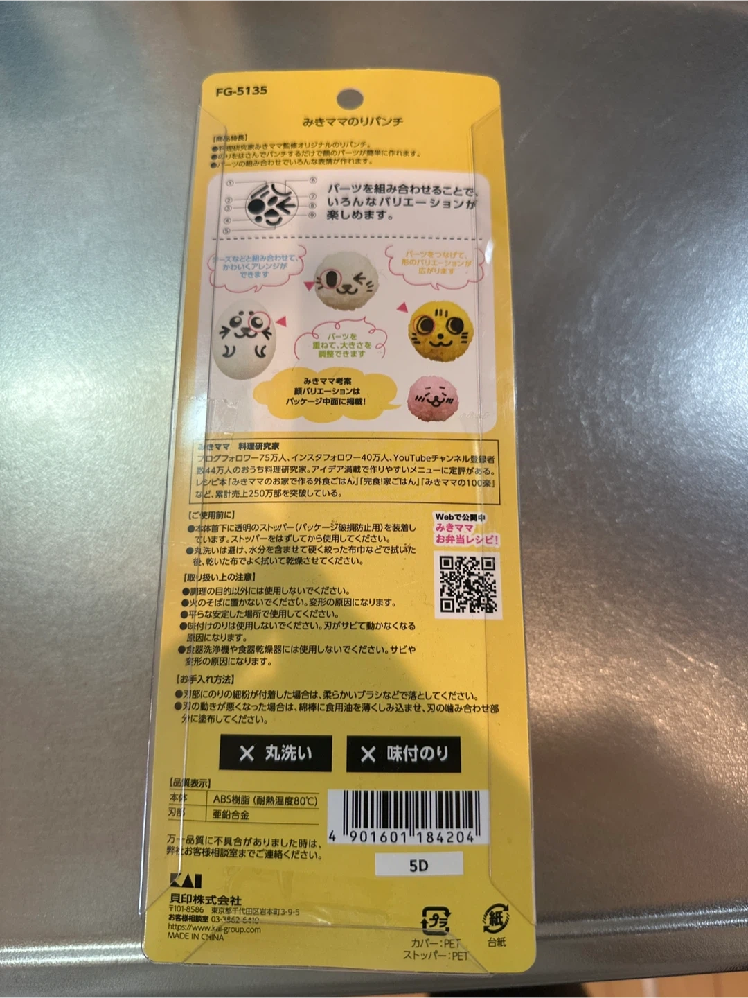 貝印ののりパンチです。 ・型番:FG-5135 ・パーツを組み合わせていろいろなバリエーションが楽しめます。 子供のお弁当作りのために購入しましたが間違えて2つ購入してしまったため出品します。 完全新品未使用です。 保管に関しましては開封もしておりませんが、素人保管のため神経質な方はご遠慮下さい。 よろしくお願いします。