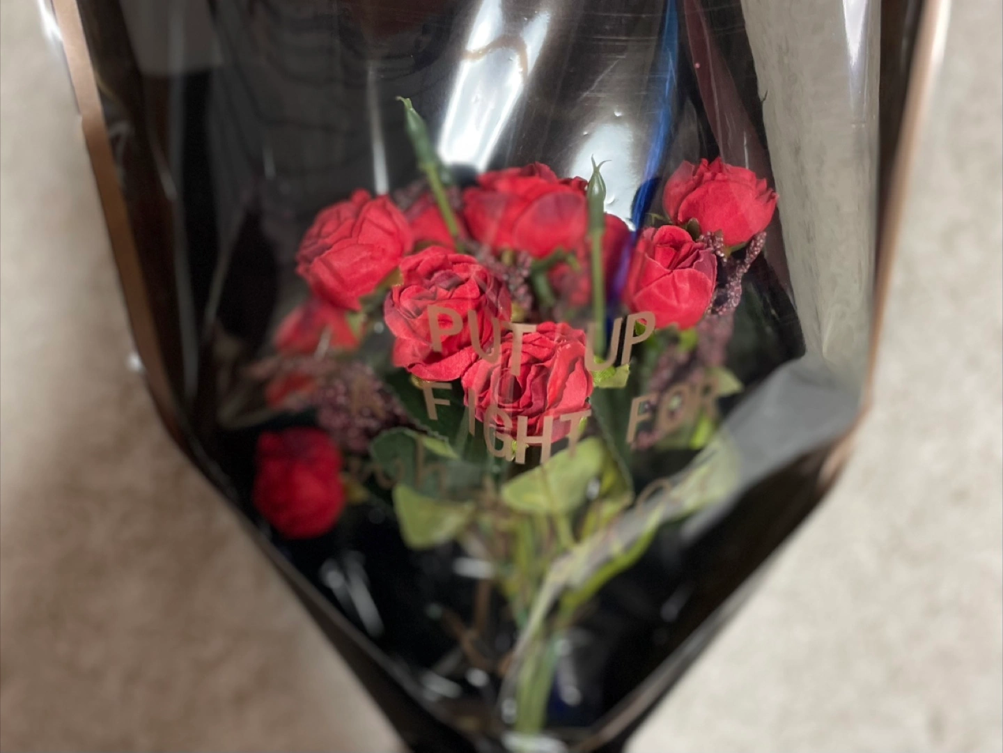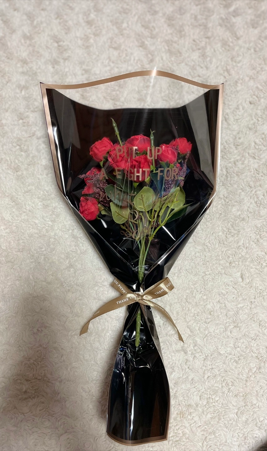 赤いバラの造花が黒色のラッピングで包まれ、リボンが付いた美しいアレンジメントです。 - 色: 赤 - 包装: 黒色のラッピング - 装飾: リボン付き - 花の種類: 造花(赤いバラ) -長さ:30cm #母の日 #プレゼント ご覧いただきありがとうございます。