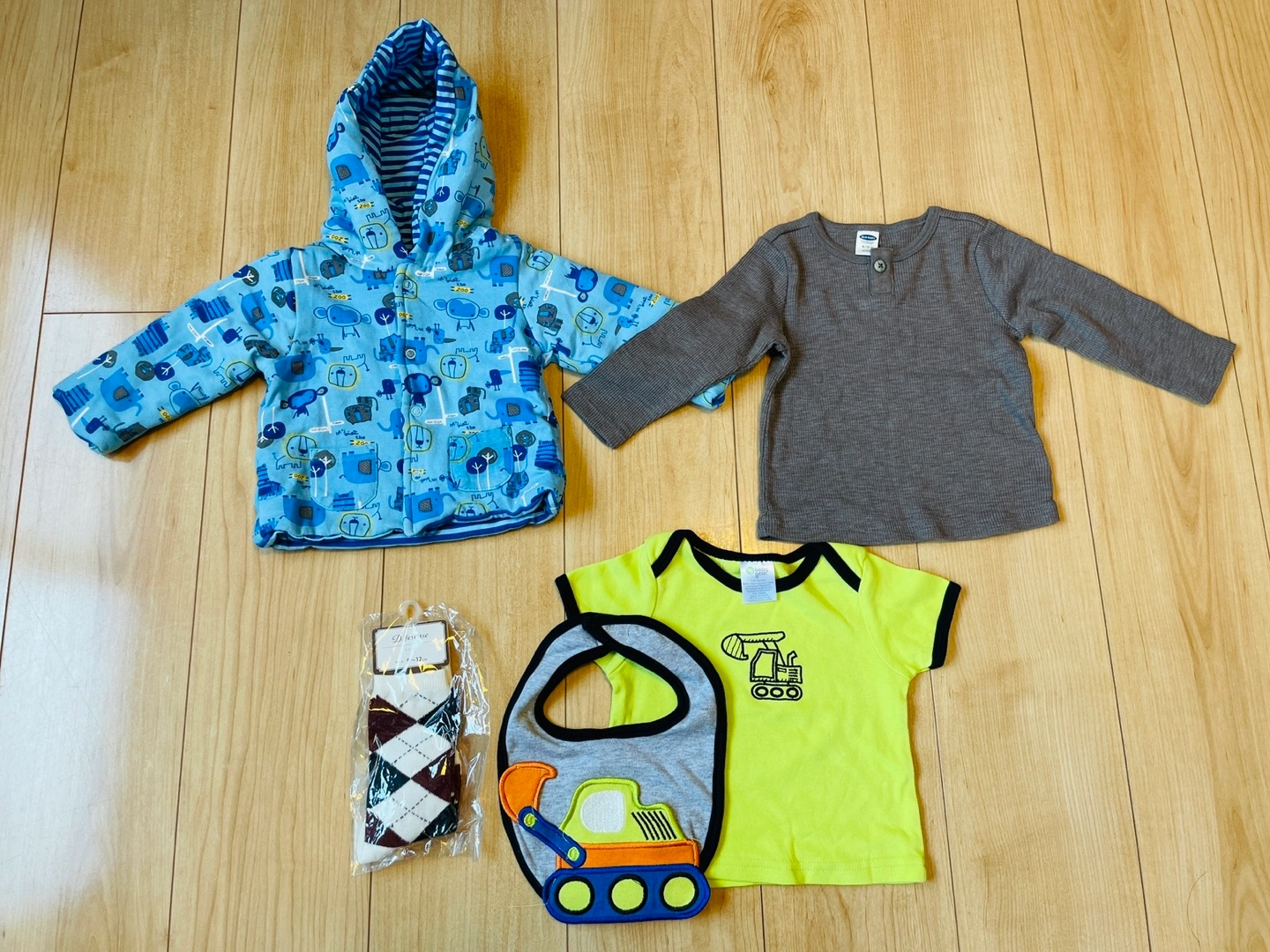 男の子の衣類をまとめて欲しい方にお譲りします。 メーカーばらばらですが、生後半年から1年未満くらいの男の子のお子様用です。 未使用に近いものが5点(スタイ含む)でしたが、H&Mとbaby GAPのカーディガンとベスト(古着)が出てきたのでおまけで2点お付けして全7点です。 うちではもう不用のため欲しい方にお安くお譲りします。 ダッドウェイの新品靴下がお値段1,000円なので他のお品物がおまけで全部ついてくる感じです。 開封はしておりますが、どれもほとんど着用しておらず、綺麗な状態かと思います。 気になった方はご連絡いただき、 実際品物をお確かめいただき、お譲りできたらと思います。 ・Sprout ジャケット ・Sprout サイズ:00 ・Old Navy 長袖シャツ ・その他:スタイ、Tシャツ、靴下 ・子供服まとめ売り