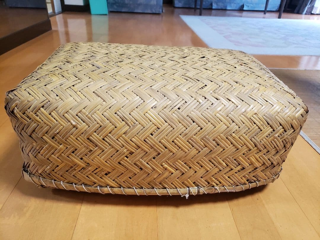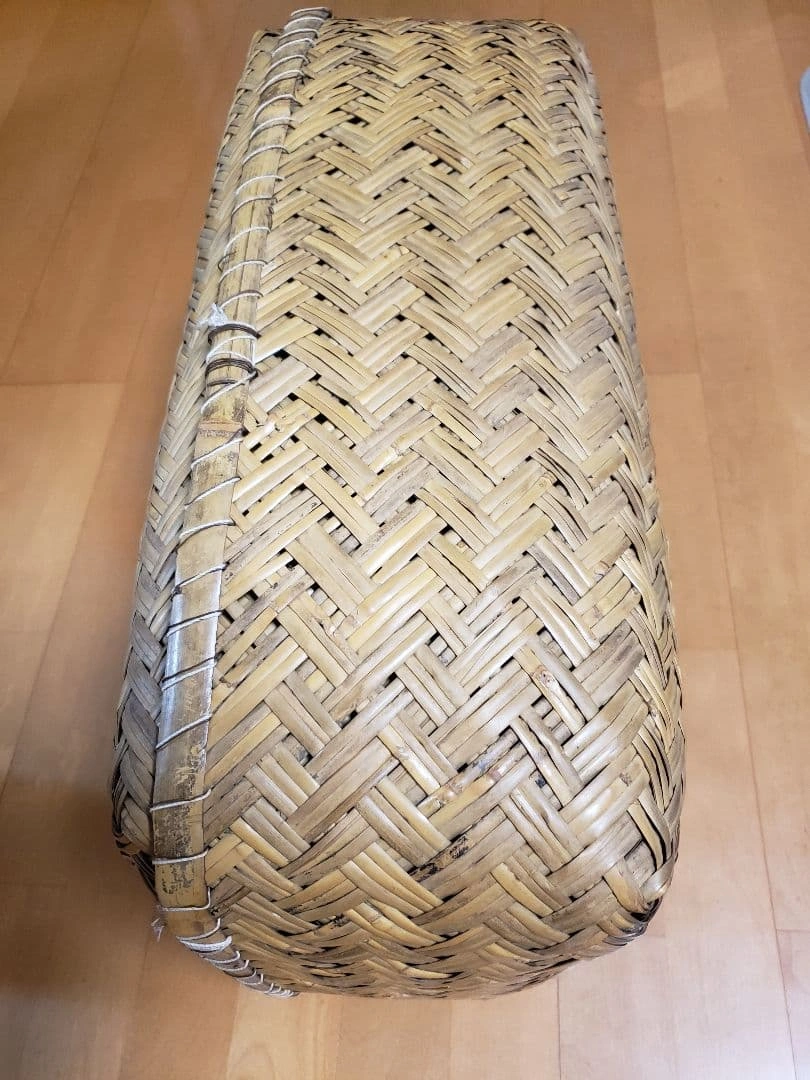超希少60年前の天然竹製手編み収納ボックス 約54cm x 39cm国産