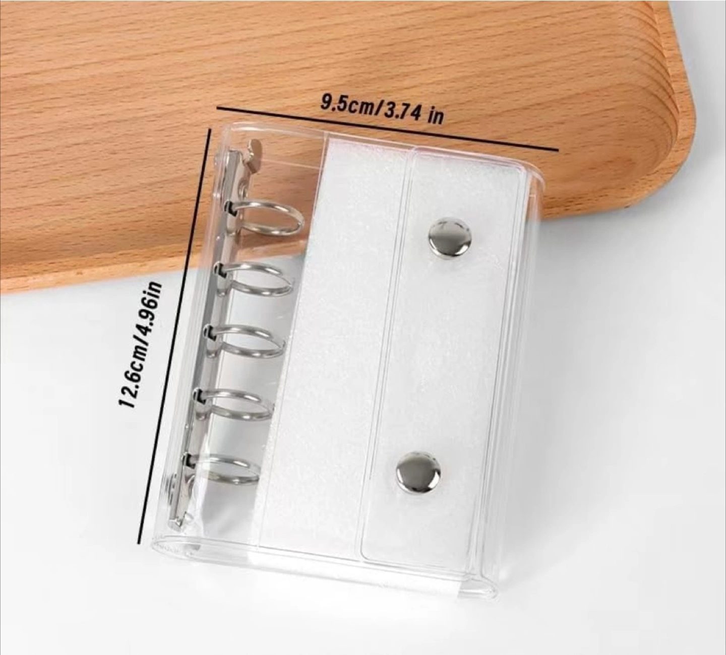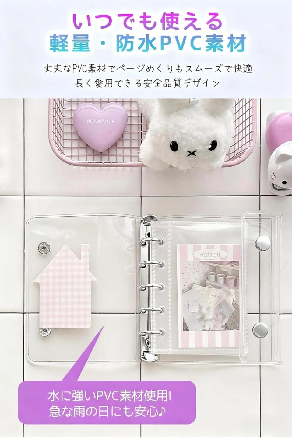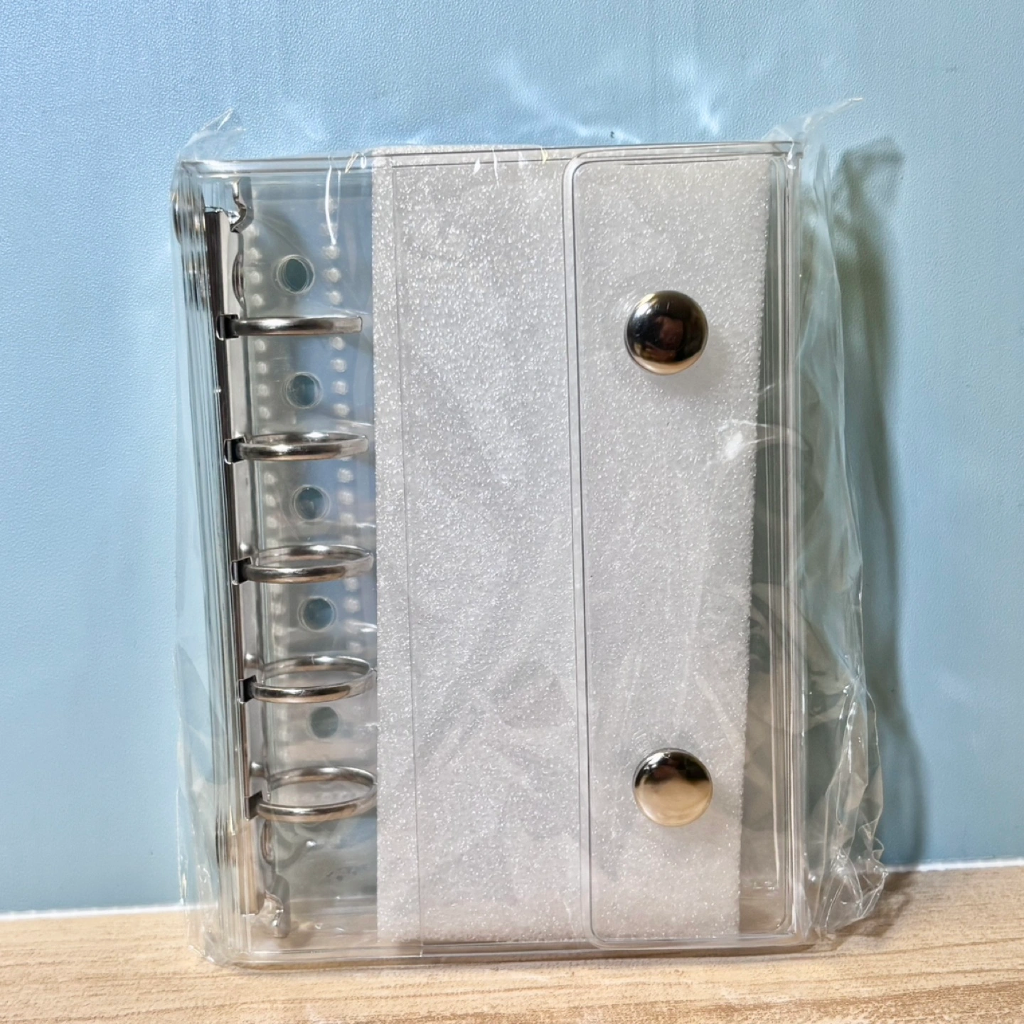 【新品】シール帳 クリア M5サイズ 5穴 ミニバインダー 新品未使用 サイズ:約9.5cm x 12.6cm 素材 : PVC タイプ : 5穴 リフィル付き 今、お子様や推し活界隈で流行っているシール帳。クリアタイプなので、お好みのシールなどでDIYしてあなただけのオリジナルが作れます! ●【すぐ使える透明スリーブ10枚付き】透明リフィル10枚入りですぐ使える! ●シール収納、推し活、カード収納、など