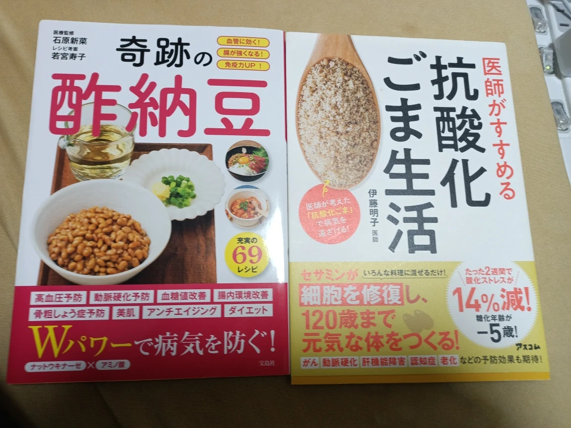 レシピ本2冊セットです。 ・「奇跡の酢納豆」 ・「医師がすすめるごま抗酸化生活」 中古品であることをご了承ください。