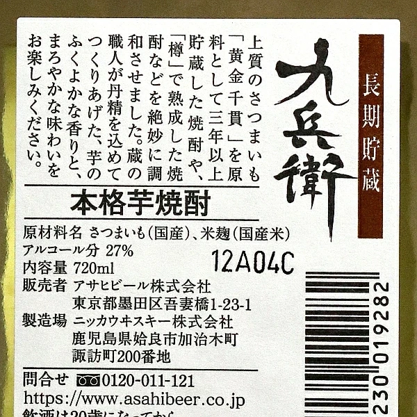 長期貯蔵いも焼酎 久兵衛 (3年連続優秀味覚賞獲得) ★2本の場合は4000円でお譲りします