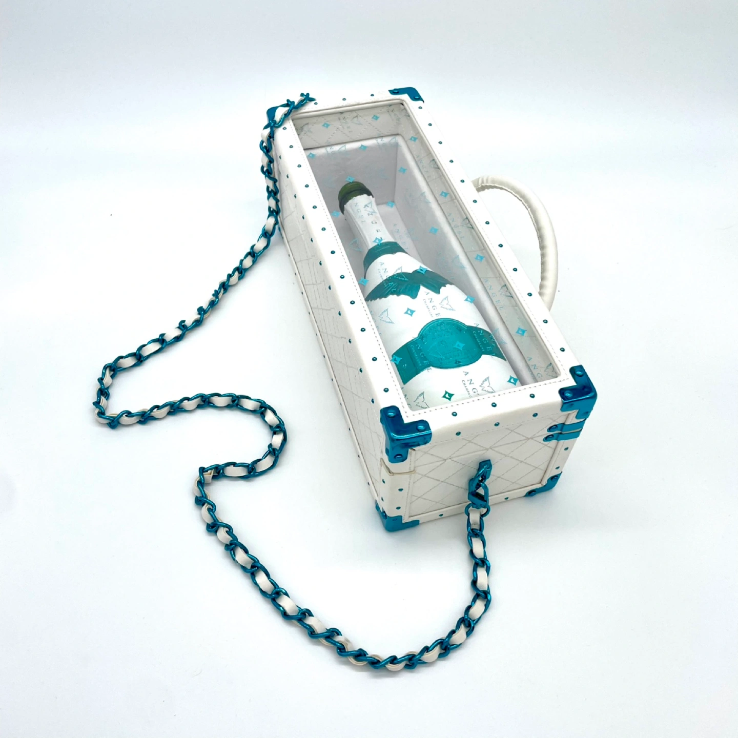 エンジェルシャンパンのホワイトのボトルと専用ケースのセットです。ボトルには「ANGEL」の文字と翼のモチーフがデザインされており、ケースもボトルと同じホワイトとブルーのカラーリングで統一感があります。 ケースはチェーン付き。 鍵付きですので簡易ロックもできます。 エンジェルシャンパン ホワイトデー限定 レザータイプ ホワイト ブルー空箱 空瓶とケースのセットです。 ANGELボックス、小物をオシャレに収納 わかる人にはわかる!がイイ!! ANGEL CHAMPAGNE NV Brut Rose White -VALENTINE EDITION- レザータイプ 空き箱のみ・鍵あり・チェーンあり 【ブランド】エンジェルシャンパン 【カテゴリ】シャンパン、スパークリング 【商品の状態】空瓶とケースのセット 【カラー】ホワイト系、ブルー系
