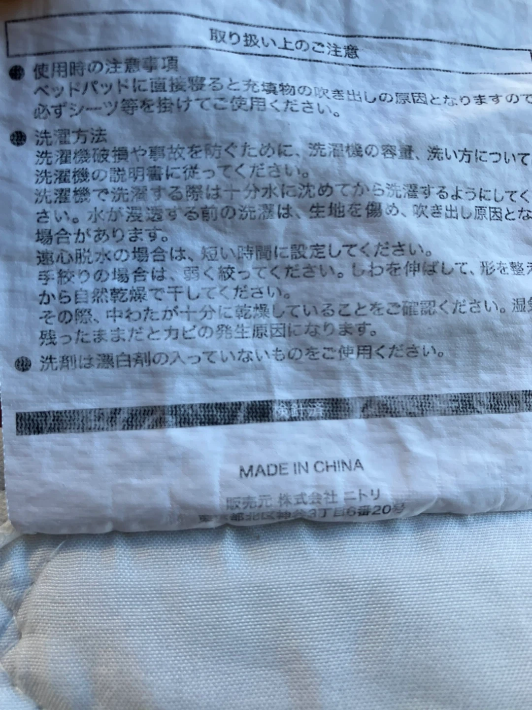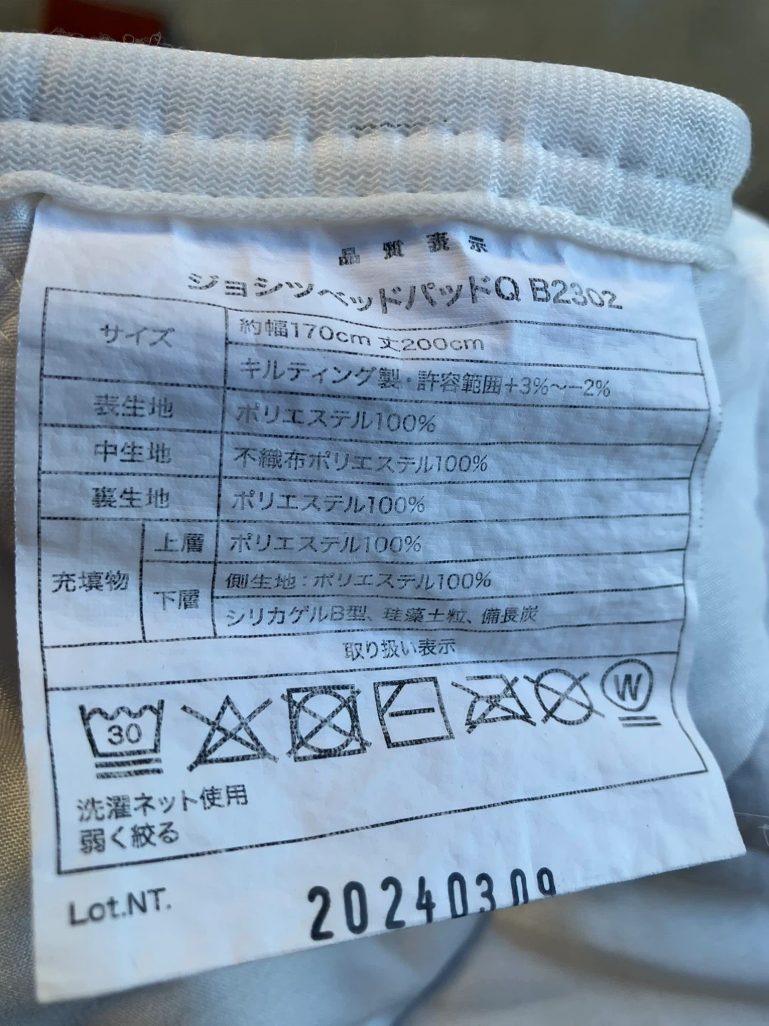除湿ベッドパッドです 【情報】 ニトリ 商品名:ジョシツベッドパットQ B2302 サイズ:約幅170cm×200cm 素材:ポリエステル100% 【状態】 使用感少なめ 中古品であることご了承ください。 キャロットで購入。使いたいのですが、柔軟剤の香りが苦手で、2度洗濯しましたが、まだ少し香ります。多分普通は気にならないと思います。 残念ですが手放すことにしました。 とてもしっかりとした除湿ベッドパットです。