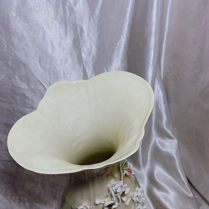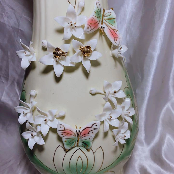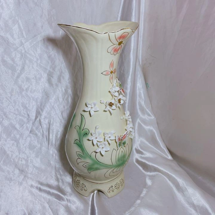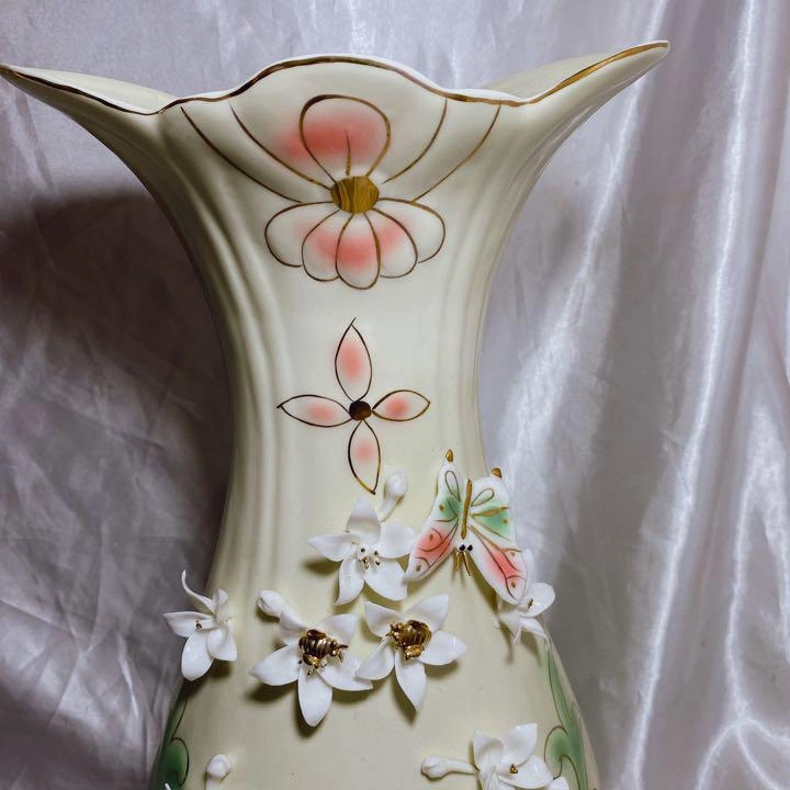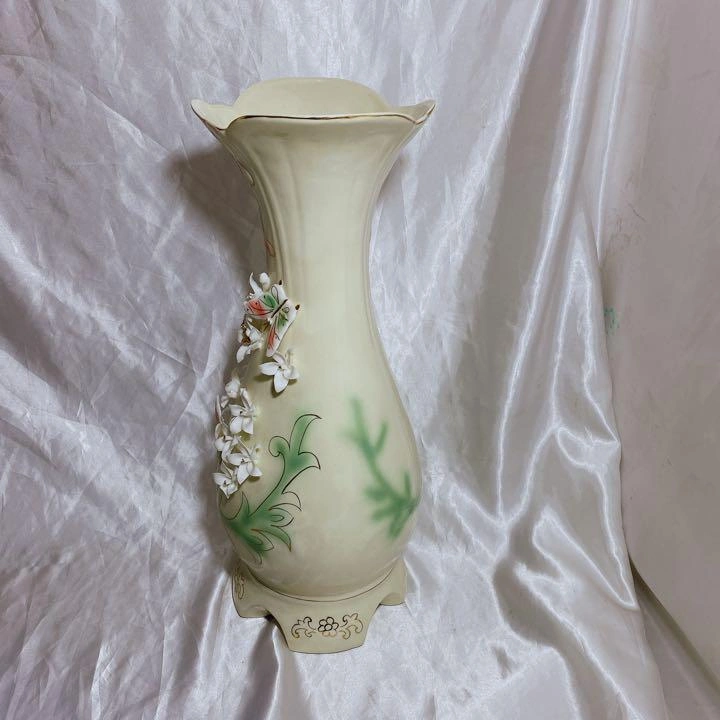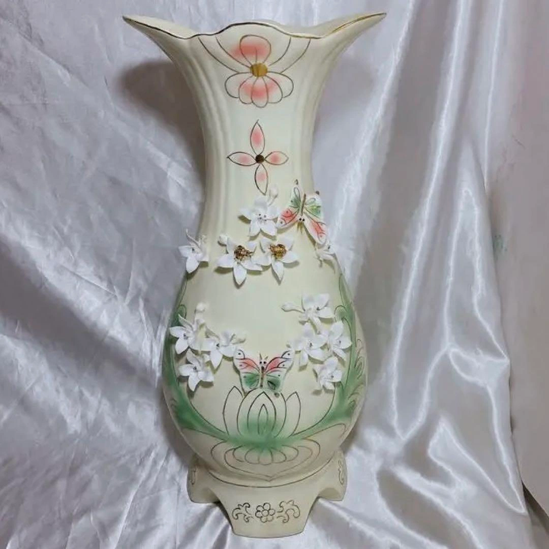 ご覧頂きありがとうございます。 陶花付き 花瓶です。 ◆サイズ◆ 高さ 45cm 横幅 20cm 奥行き 18cm 繊細な作りでお花やハチや蝶々など立体的に作られている、とても存在感がある可愛い花瓶です✨✨ かなり大きいサイズになります 。 アンティークショップで2万円程で購入した物です。 趣味で集めていた物をいっぱいになりましたので、出品します。 カラー···ホワイト カテゴリ···花瓶 形状···丸形 テイスト···アンティーク・クラシック、エレガント、姫系・フェミニン・ロマンチック 主な素材···陶磁器 #花瓶 #海外製花瓶 ご希望の方はお気軽にご連絡ください。