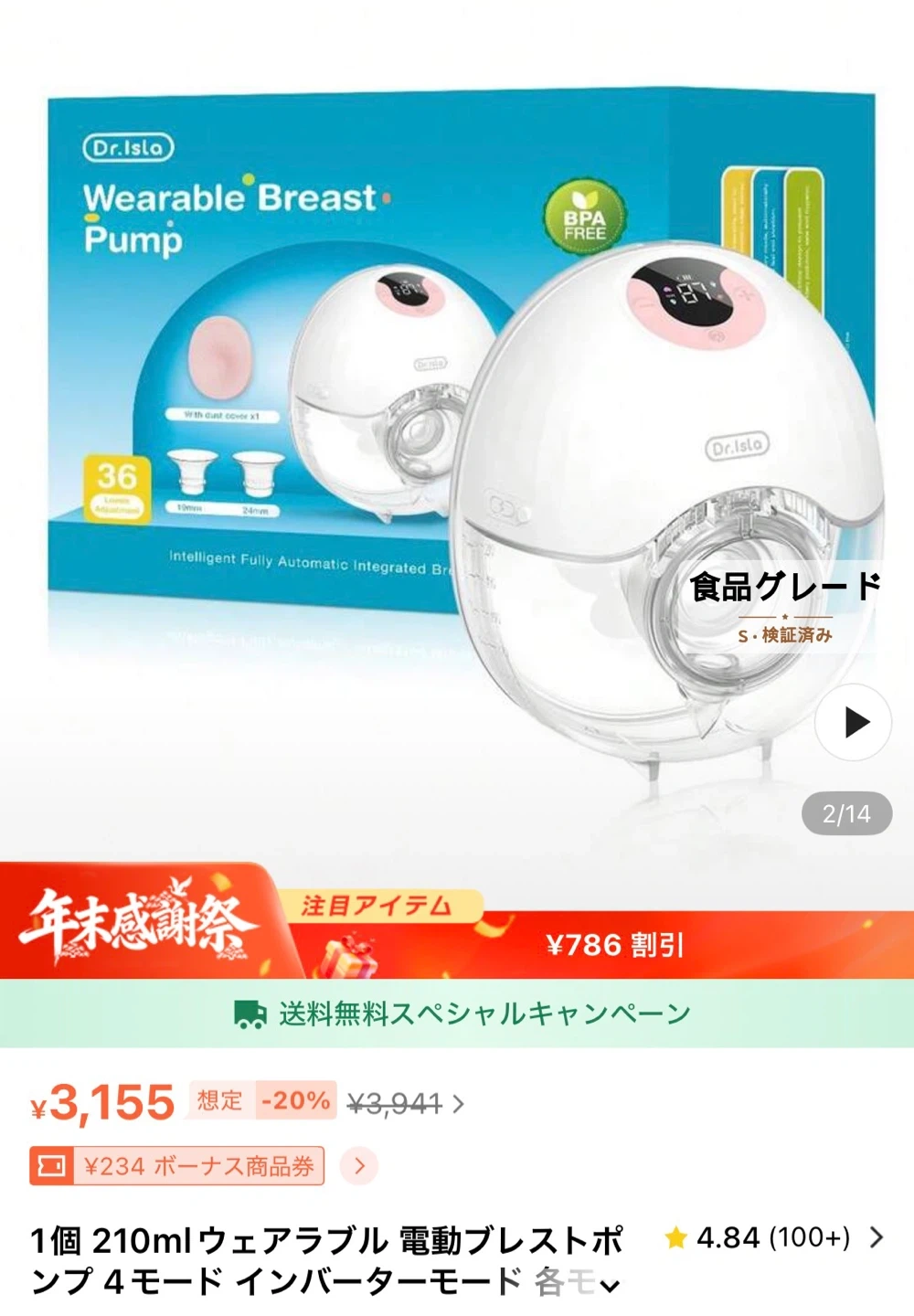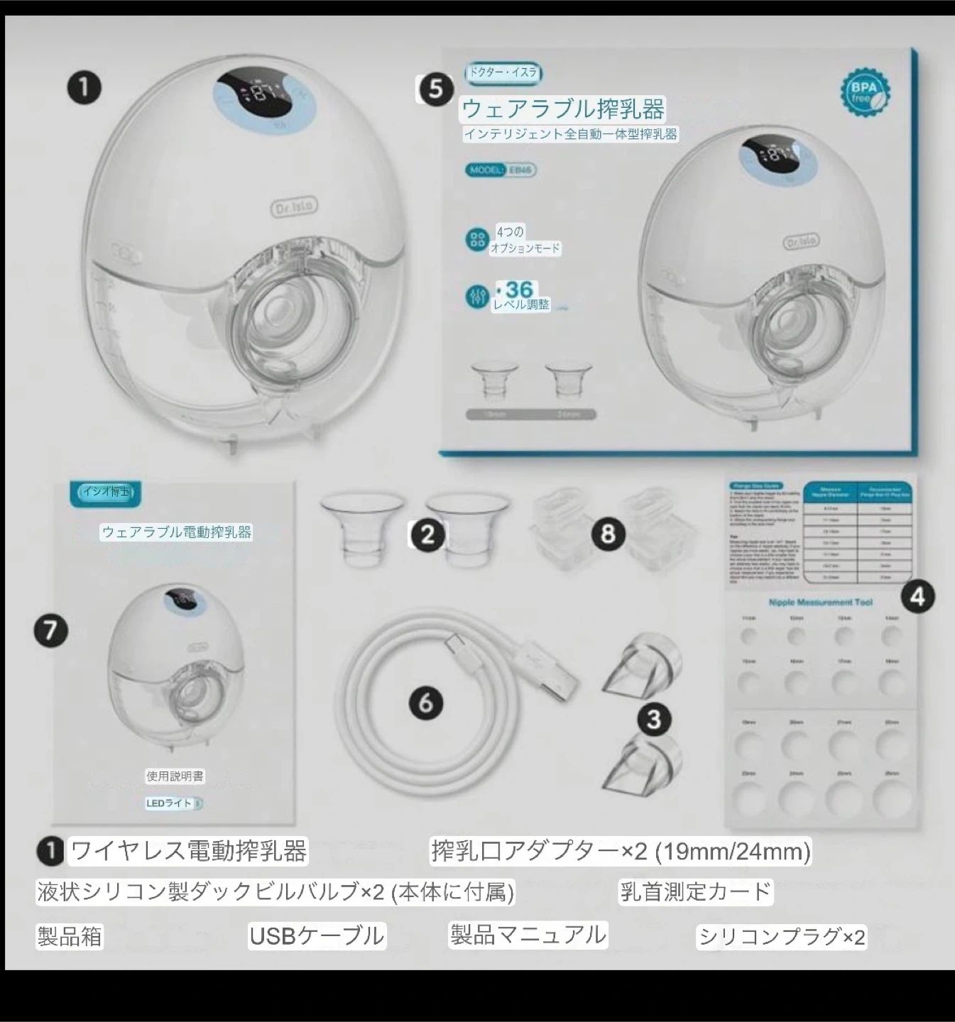 ドクターイスラのウェアラブルの電動搾乳器です。 【情報】 ブランド:ドクターイスラ 型番:EB46 【状態】 新品未開封未使用 【付属品】 箱、搾乳口アダプター、USBケーブルなどが付属します。(詳細は画像をご確認ください) 今年の7月頃購入8月に出産しました。 産後鬱になり母乳を止めて内服治療することになり使えなくなった為出品します。 もう1箱は使用してしまった為出品するか迷ってます。 使用感感想としては、ベビーがなかなか吸ってくれずパンパンになり大変だった私にはめちゃくちゃ良かったです。 本当に買ってよかったなと思いました。 7年ぶりの出産でしたがもっと昔にこれがあったらどんなに助かったか…という感じです。 通販サイトで購入したのでご理解のある方のみご購入お願いします。 また返品クレーム対応は致しません。 こちらで試してみて反応無かった場合ジ〇ティーでも出品しようと思います。