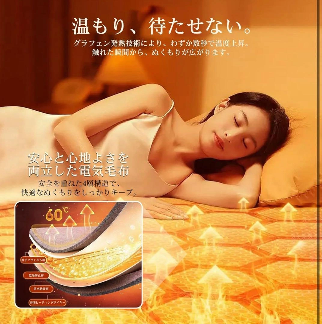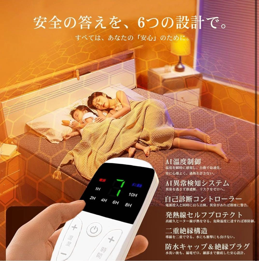 ご覧頂きありがとうございます。 AI自適応恒温制御で快適かつ安全にご利用いただけます。最新のAIシステムが毛布全体の温度を常時監視し、自動的に最適化することで局部的な高温や過度な加熱を防止します。 6段階温度調整と10段階タイマー、自動オフ機能付き。温度は38~50℃の範囲で6段階から選べ、タイマーは1時間ごとに1~10時間の設定が可能です。 6重安全防護システム。 コントローラーを取り外して丸洗い可能です。ダニ退治や消臭にも効果的です。 ご希望の方はお気軽にご連絡ください。