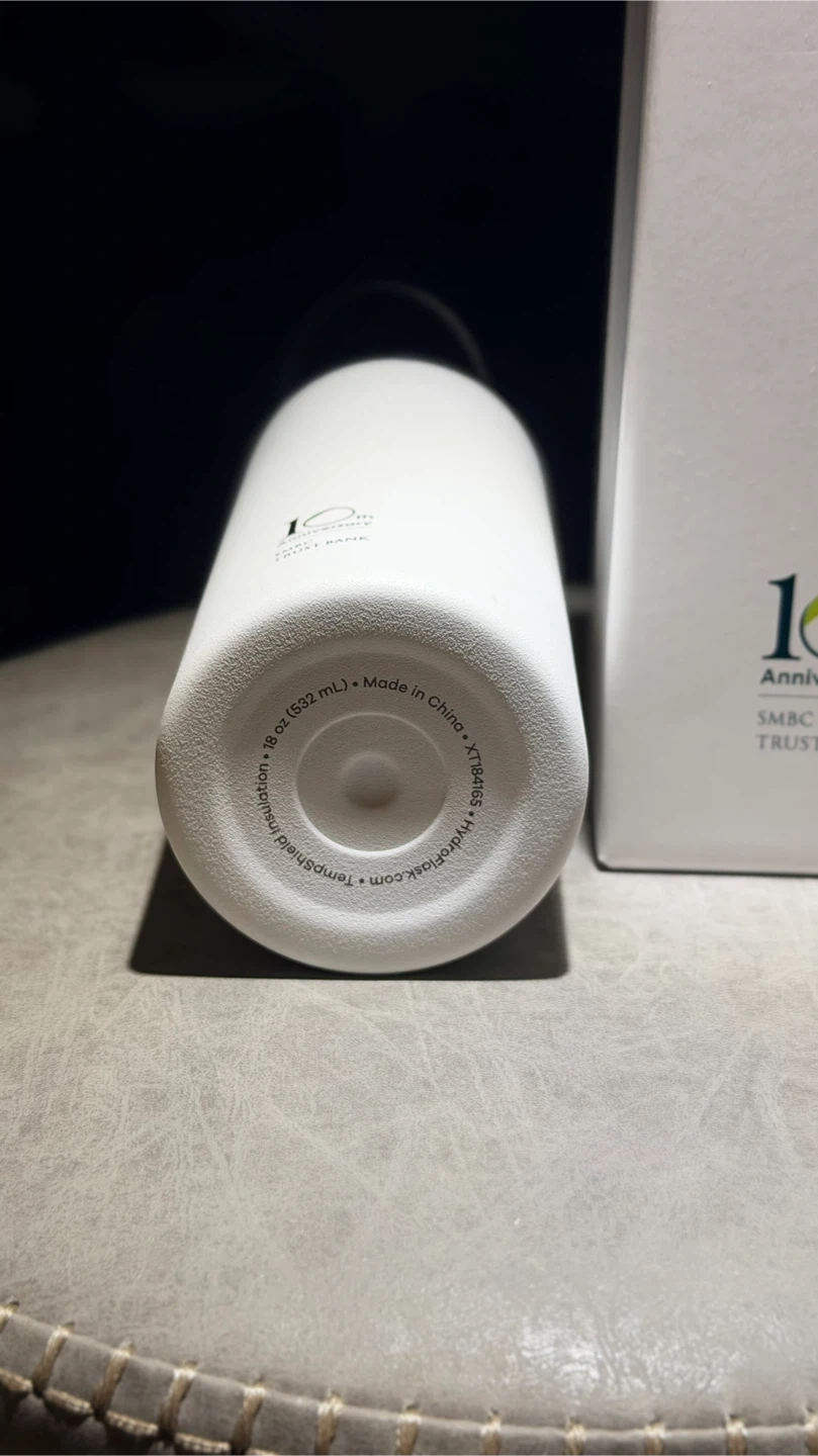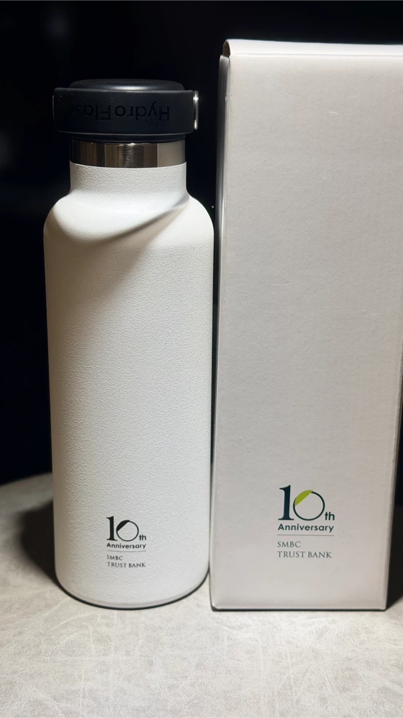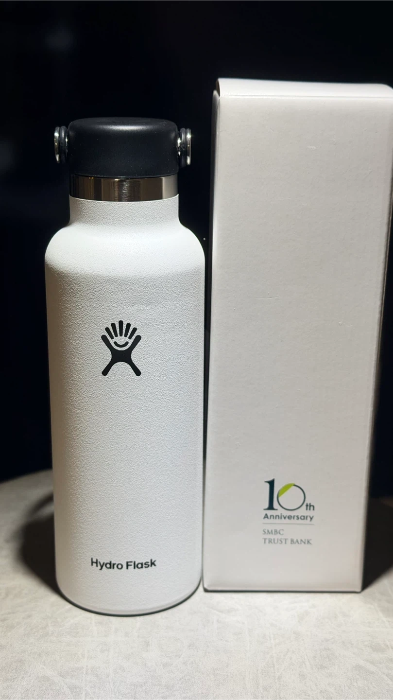 ハイドロフラスクのボトルです。 ・ブランド:ハイドロフラスク ・容量:18oz(532ml) ・SMBC信託銀行10周年記念ロゴ入り ・箱付き 非売品です!