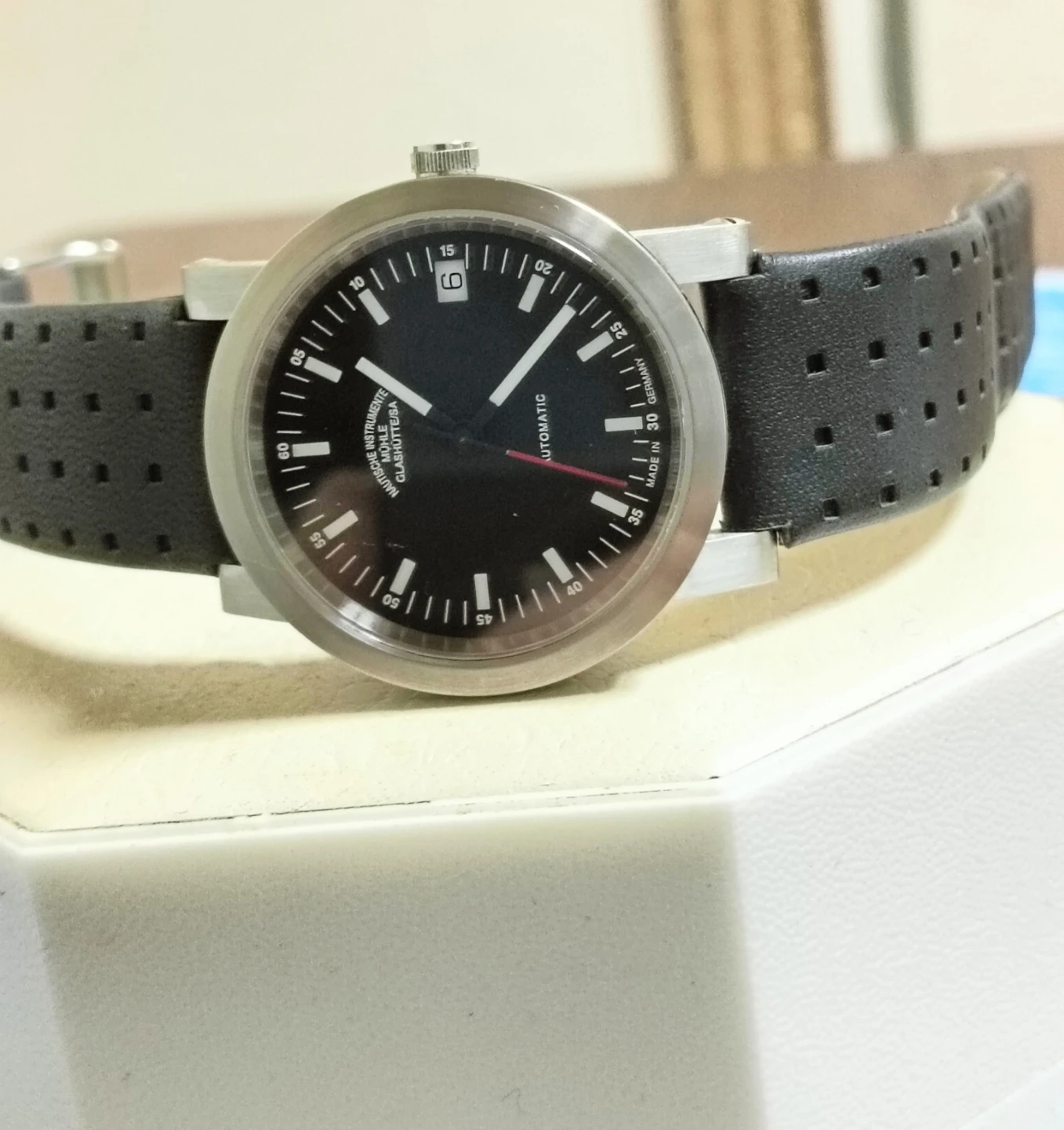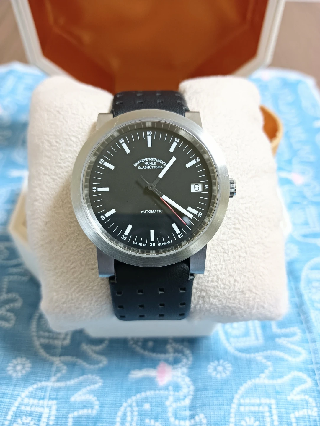非常に美品。Muhle Glashutte ミューレグラスヒュッテ 裏スケ 自動巻きデイト 腕時計