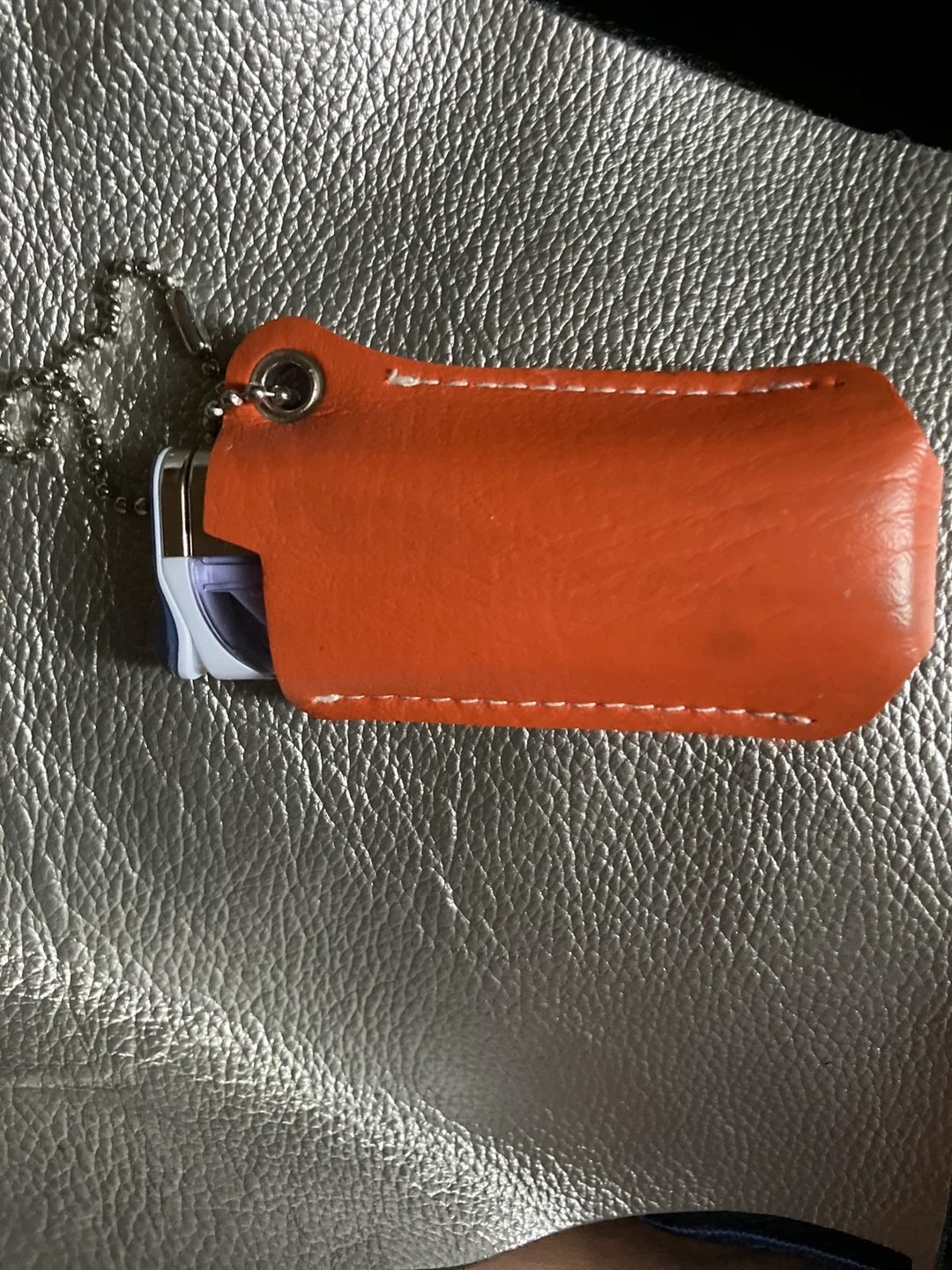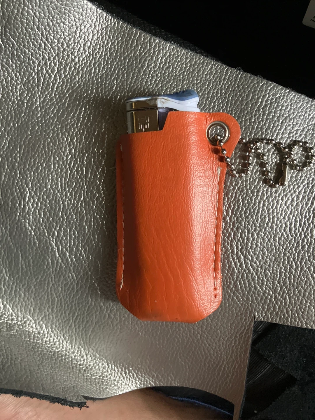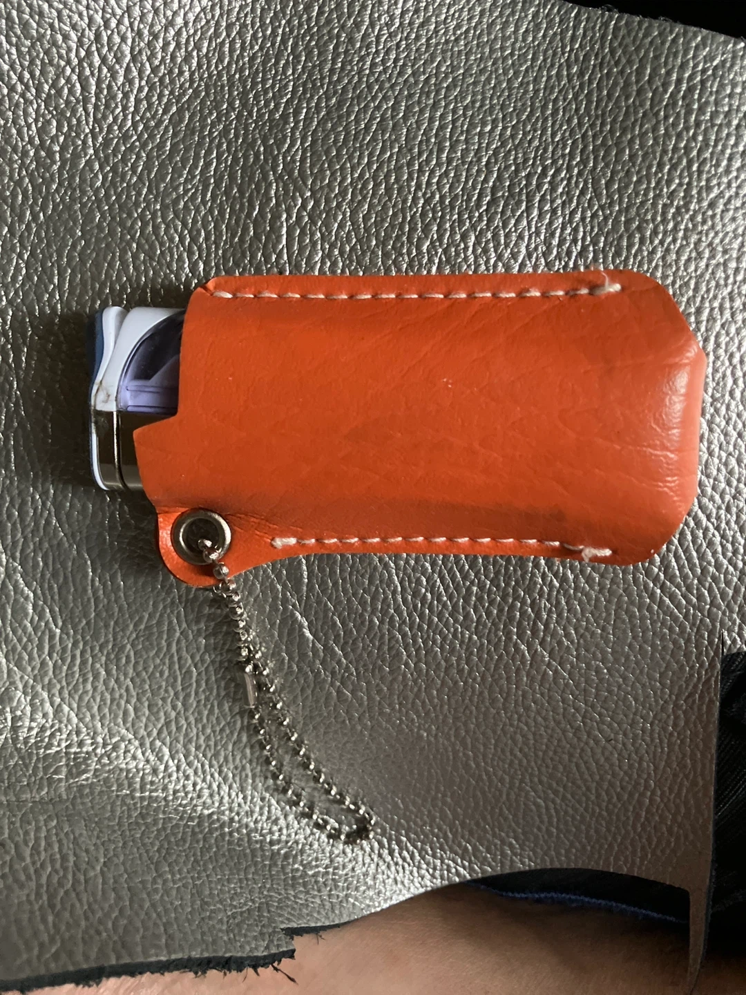 オレンジ色の革製ターボライターケースです ・色:オレンジ ・素材:レザー ・状態:新品未使用 ・ケースとライターのセット