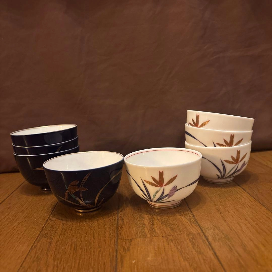 香蘭社 湯呑みまとめ売り ネイビーブルー 白8点セット 有田焼 コウランシャ