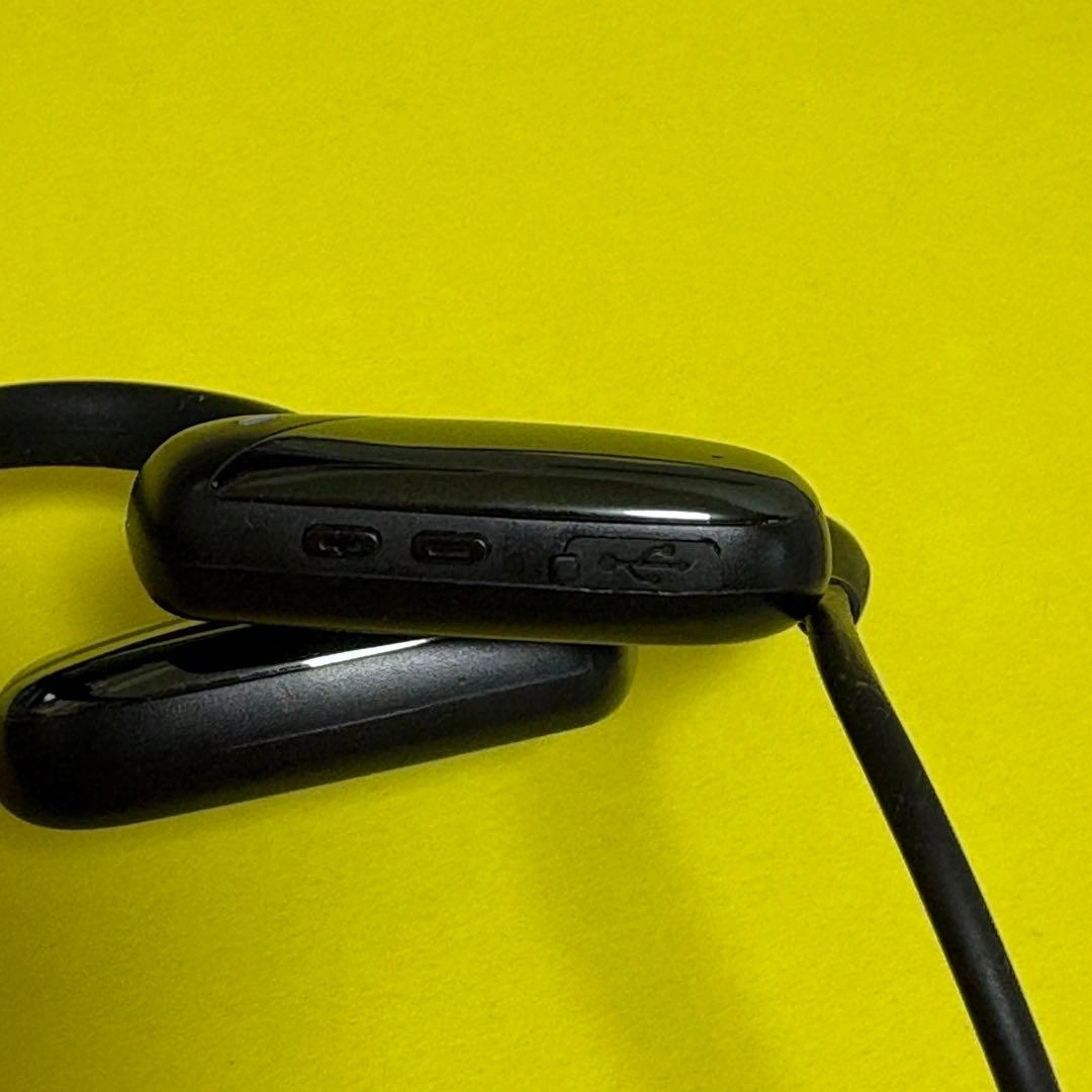4年ほど前に購入し、休日に家事をしながら使用しておりました。新しい骨伝導イヤホンを購入したので出品します。骨伝導イヤホンの購入を考えている方、お試しでいかがでしょうか^_^ ★連続使用時間は充電直後から約1時間です。動作確認済みで す。 ★説明書、充電器などの付属品はありません。 ★充電はTYPE-Bを使用。 ★充電部分の蓋?がちぎれています。 ★Android・iPad mini・iPhone16で使用していました。 ★完全な骨伝導では無いのか、音量上げると音漏れします。 - タイプ: 骨伝導イヤホン - カラー: ブラック - 接続方式: ワイヤレス - 充電ポート: タイプB - ボタン: 操作ボタンあり 中古品、ジャンク品、自宅保管品ですので気になさらない方お取引よろしくお願い致します。 ご覧いただきありがとうございます。